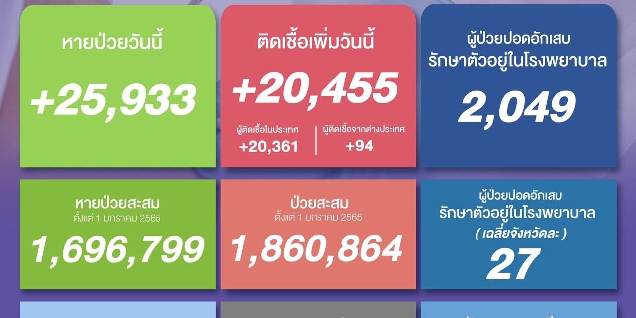 หายป่วยสะสม 1,696,799 ราย (ตั้งแต่ 1 มกราคม 2565)