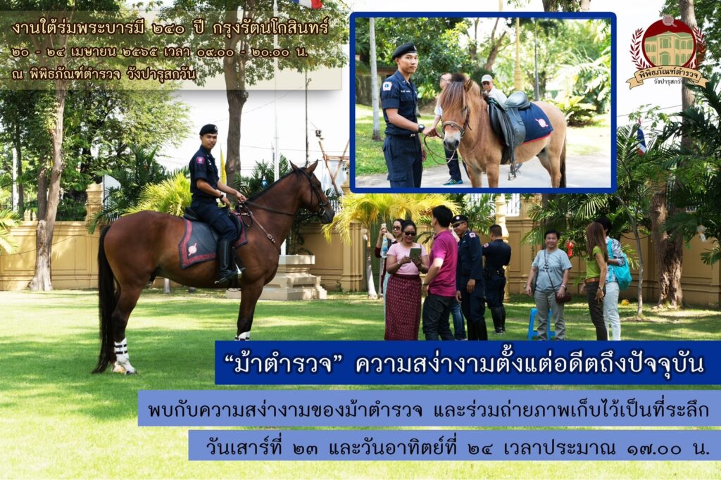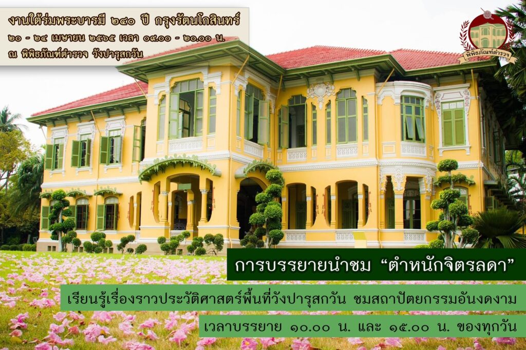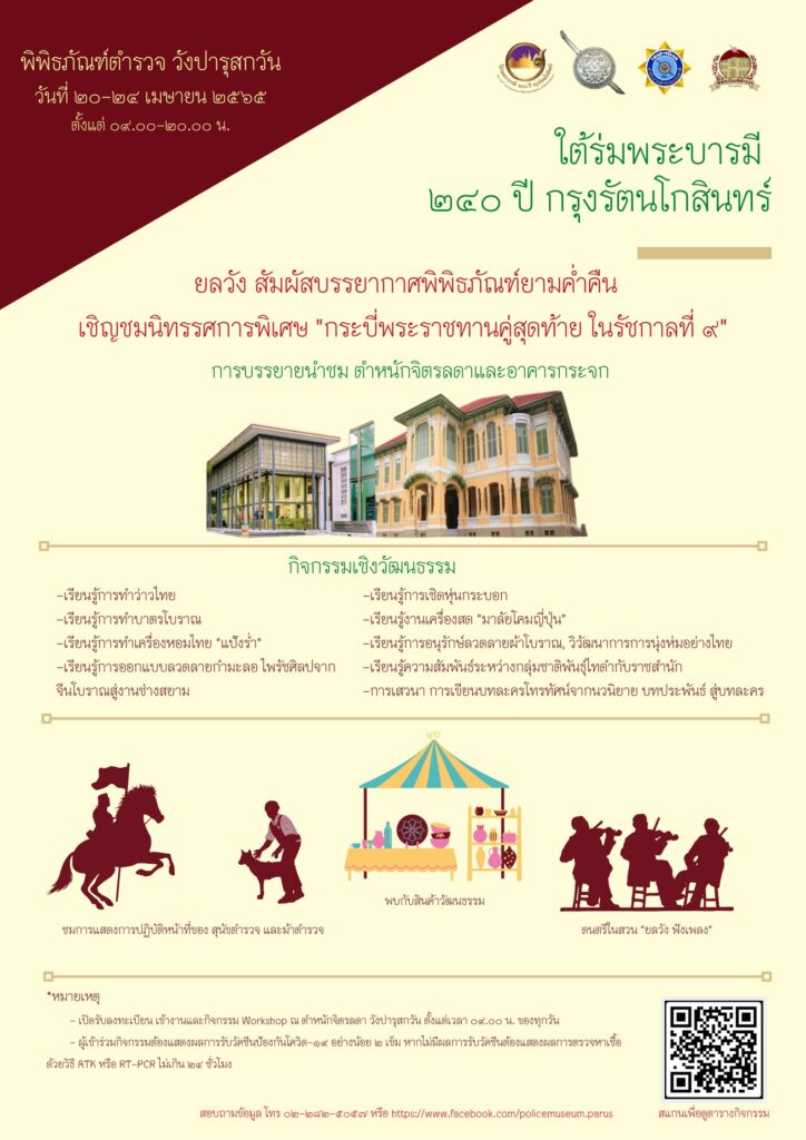 พิพิธภัณฑ์ตำรวจ สำนักงานตำรวจแห่งชาติ ขอเชิญชวนพี่น้องประชาชนเข้าร่วมงานใต้ร่มพระบารมี 240 ปี กรุงรัตนโกสินทร์ และเยี่ยมชมพิพิธภัณฑ์ตำรวจวังปารุสกวัน ภายใต้กิจกรรม