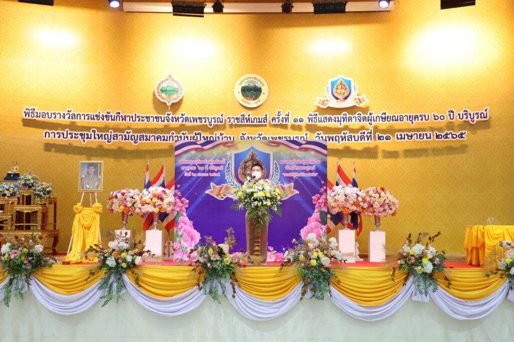 นายเด่นณรงค์ ธรรมมา นายกสมาคมกำนัน ผู้ใหญ่บ้านฯ จังหวัดเพชรบูรณ์ กล่าวว่า คณะกรรมการบริหารสมาคมฯ ได้ร่วมกันจัดงานแสดงมุทิตาจิตแก่ กำนัน ผู้ใหญ่บ้าน และแพทย์ประจำตำบล ผู้ปฏิบัติหน้าที่จนอายุครบ 60 ปีบริบูรณ์ ในปีพุทธศักราช 2565 ขึ้นเพื่อเป็นการยกย่อง เชิดชูเกียรติและเป็นการสร้างขวัญกำลังใจ แก่ผู้ปฏิบัติหน้าที่อยู่ในหมู่บ้านตำบล ด้วยความวิริยะอุตสาหะ ในการปฏิบัติหน้าที่ด้านการบำบัดทุกข์บำรุงสุข แก่พี่น้องประชาชนในพื้นที่การปกครอง พร้อมกันนี้ ยังตอบสนองนโยบายรัฐบาลในการดำเนินงานโครงการต่างๆที่ได้รับมอบหมาย จนสำเร็จลุล่วงก่อให้เกิดประโยชน์แก่ประเทศชาติและสาธารณชนจวบจนอายุครบ 60 ปี บริบูรณ์