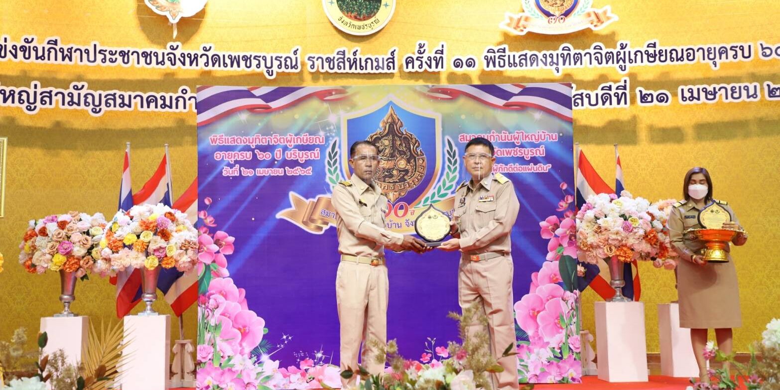 โอกาสนี้รองผู้ว่าราชการจังหวัดเพชรบูรณ์ ได้มอบโล่เชิดชูเกียรติและกล่าวแสดงความยินดี แก่กำนัน ผู้ใหญ่บ้าน และแพทย์ประจำตำบล ผู้ปฏิบัติหน้าที่จนอายุครบ 60 ปีบริบูรณ์ในปี 2565