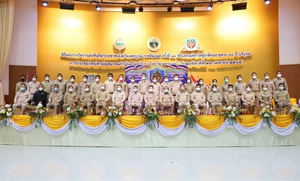นายอำนาจ แย้มศิริ รองผู้ว่าราชการจังหวัดเพชรบูรณ์ กล่าวว่า ในปี 2565 นี้ มีผู้ที่เกษียณ 60 ปี ในตำแหน่งกำนัน ผู้ใหญ่บ้าน และแพทย์ประจำตำบล จาก 10 อำเภอ รวมทั้งหมด 63 ราย ยกเว้นอำเภอน้ำหนาว ที่ไม่มีผู้เกษียณอายุ ตามที่ทราบกันดีอยู่แล้วว่า กำนัน ผู้ใหญ่บ้าน เป็นสถาบันหลักที่อยู่คู่กับประเทศไทย นับถึงวันนี้เป็นเวลา 130 ปี ซึ่งที่ผ่านมาได้อุทิศตนเพื่อปฏิบัติหน้าที่ในการบำบัดทุกข์และบำรุงสุขให้กับพี่น้องประชาชนในพื้นที่การปกครอง พร้อมกับรับใช้ทุกกระทรวง ทบวง กรม ที่มีอยู่ในประเทศไทย เพื่อตอบสนองต่อนโยบายต่างๆ ของรัฐบาล กำนันผู้ใหญ่บ้าน ทำงานกันอย่างหนักตลอด 24 ชั่วโมง แทบไม่มีวันหยุด ซึ่งนับได้ว่าเป็นการสร้างคุณประโยชน์ให้กับทางราชการเป็นอย่างมาก