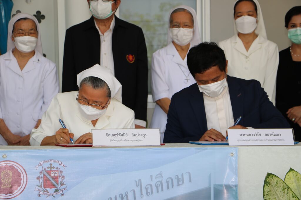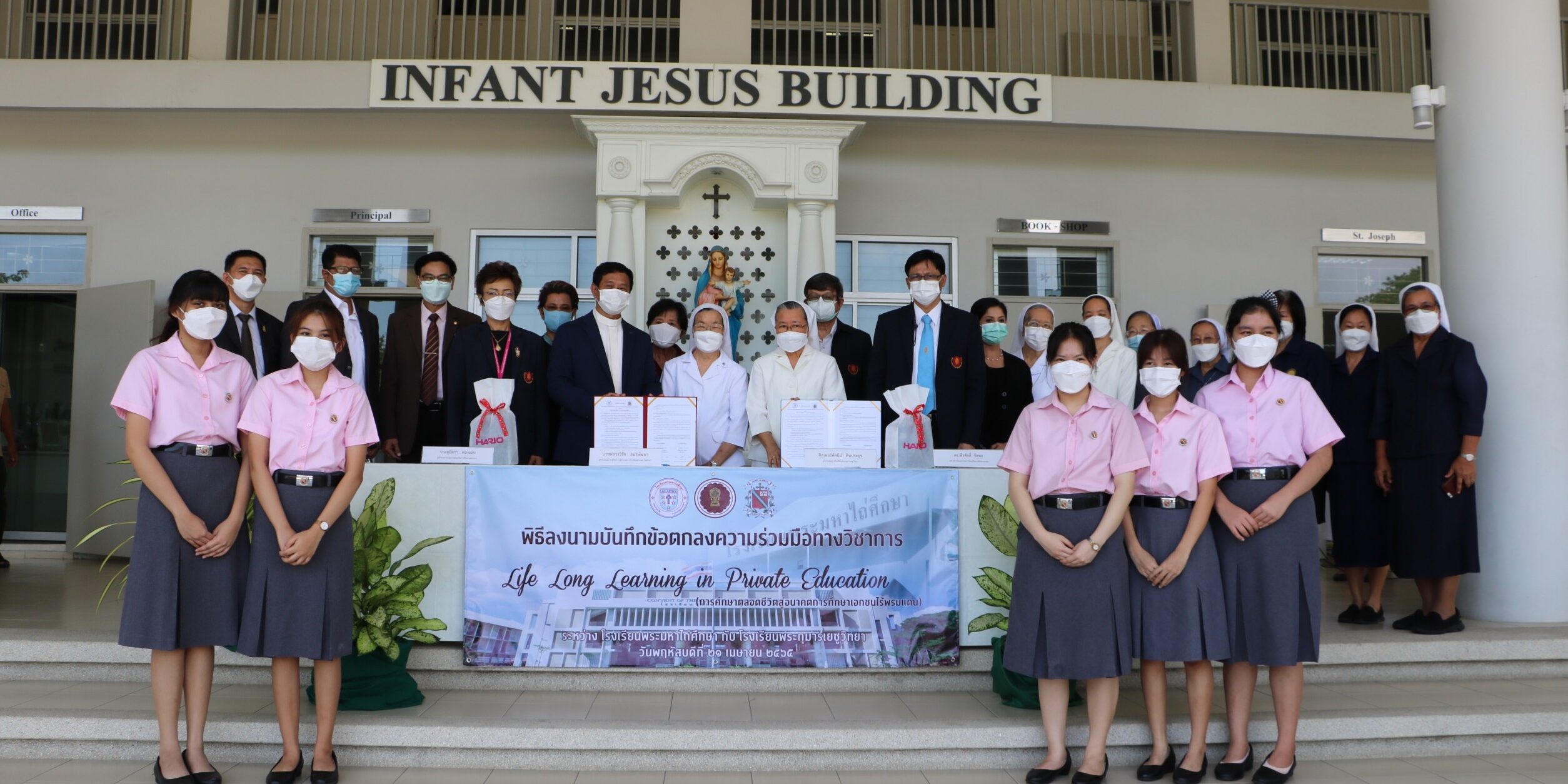 เมื่อวันที่ 21 เมษายน 2565 เวลา 14.00 น. นายพีรศักดิ์ รัตนะ เลขาธิการคณะกรรมการส่งเสริมการศึกษาเอกชน (เลขาธิการ กช.) เป็นประธานและเป็นสักขีพยานในการลงนามสัญญาข้อตกลงความร่วมมือ (MOU) โครงการเรียนรวมหลักสูตรมัธยมศึกษาตอนปลาย และโรงเรียนวิชาชีพหลักสูตรเลขานุการ (ภาคภาษาอังกฤษ) ระหว่างโรงเรียนพระมหาไถ่ศึกษา กับ โรงเรียนพระกุมารเยซูวิทยา ณ หอประชุมโรงเรียนพระกุมารเยซู พร้อมด้วย นายธีระพันธ์ พุทธิสวัสดิ์ อดีตรองเลขาธิการคณะกรรมการส่งเสริมการศึกษาเอกชน ผู้บริหารสำนักงานคณะกรรมการส่งเสริมการศึกษาเอกชน (สช.) ผู้บริหารโรงเรียนนอกระบบ คณะครูโรงเรียนมหาไถ่ศึกษา และโรงเรียนพระกุมารเยซูวิทยาเข้าร่วมในพิธี