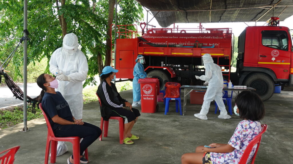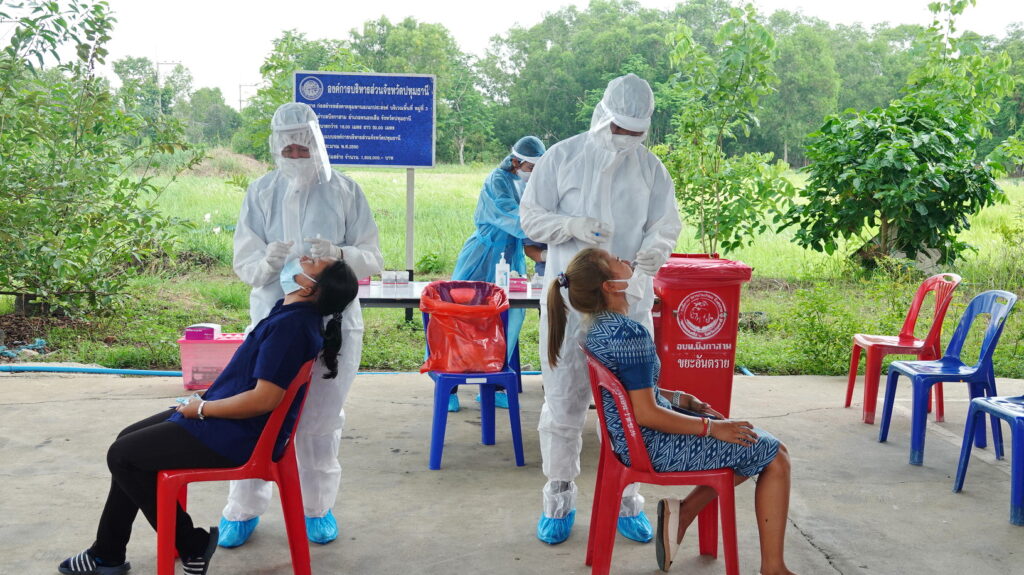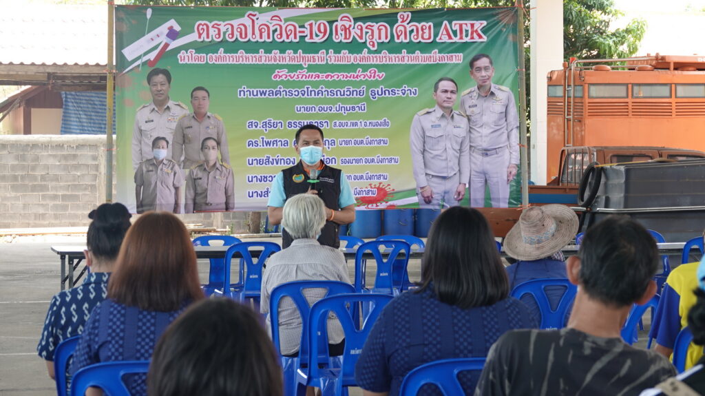 บรรยากาศการตรวจหาเชื้อไวรัสโควิด-19 เชิงรุก ด้วย ATK มีประชาชนพาครอบครัวเข้ามารับการตรวจคัดกรองกว่า 500 คน เนื่องจากเป็นช่วงหลังเทศกาลสงกรานต์ประชาชนบางส่วนได้กลับเข้าพื้นที่ จึงมีความจำเป็นต้องตรวจคัดกรองคัดแยกผู้พบเชื้อโควิด-19 ลดการแพร่ระบาดในพื้นที่ โดยทาง องค์การบริหารส่วนจังหวัดปทุมธานี ได้สนับสนุนชุดตรวจ ATK พร้อมกับ สมุนไพรเสริมภูมิคุ้มกันตำรับวัดคีรีวงค์ จ.ชุมพร เพื่อให้ประชาชนทานเสริมภูมิป้องกันเชื้อโรค และยังมีการมอบหน้ากากอนามัยคนละ 1 กล่องและเจลแอลกอฮอล์