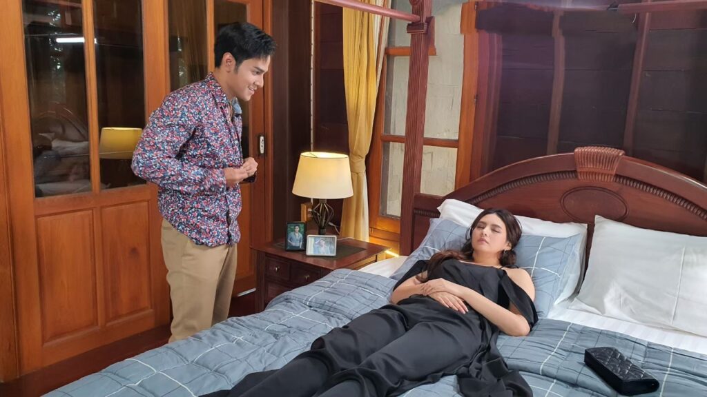 อาต้อย-จารึก ผู้กำกับฯ ใช้ วู้ดแลนด์เมืองไม้ แถวศาลายา จ.นครปฐม เซ็ทเป็นบ้านของ กำนันมงคล โดยใช้ห้องหนึ่งเป็น ห้องนอนของ กำนันมงคล เมื่อผู้กำกับฯ บรีฟนักแสดงอย่าง สาวมิ้นท์ เรียบร้อยแล้ว ก็สั่งเคลื่อนกล้อง โดยถ่ายทำฉากที่ เพชร พา หมวดเอม เข้าห้องนอน แต่ หมวดเอม ก็ใช้มารยาหญิง จน เพชร ออกจากห้อง และตัวเองก็เข้าไปค้นหาหลักฐานที่ห้องนอนของกำนันมงคล