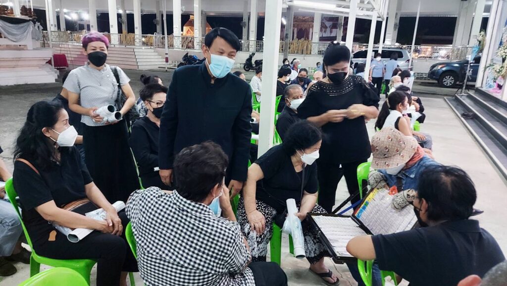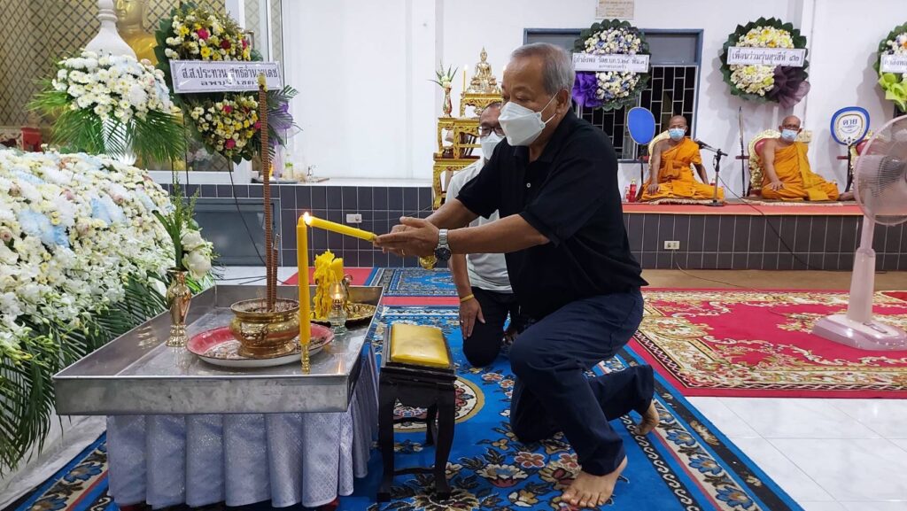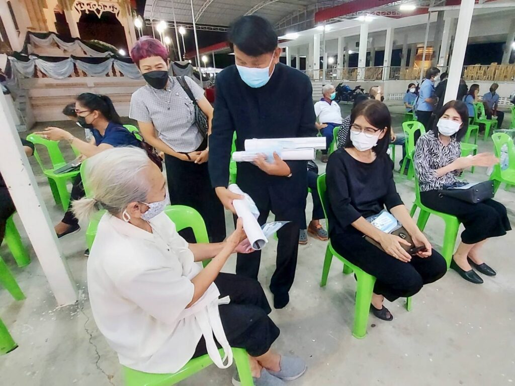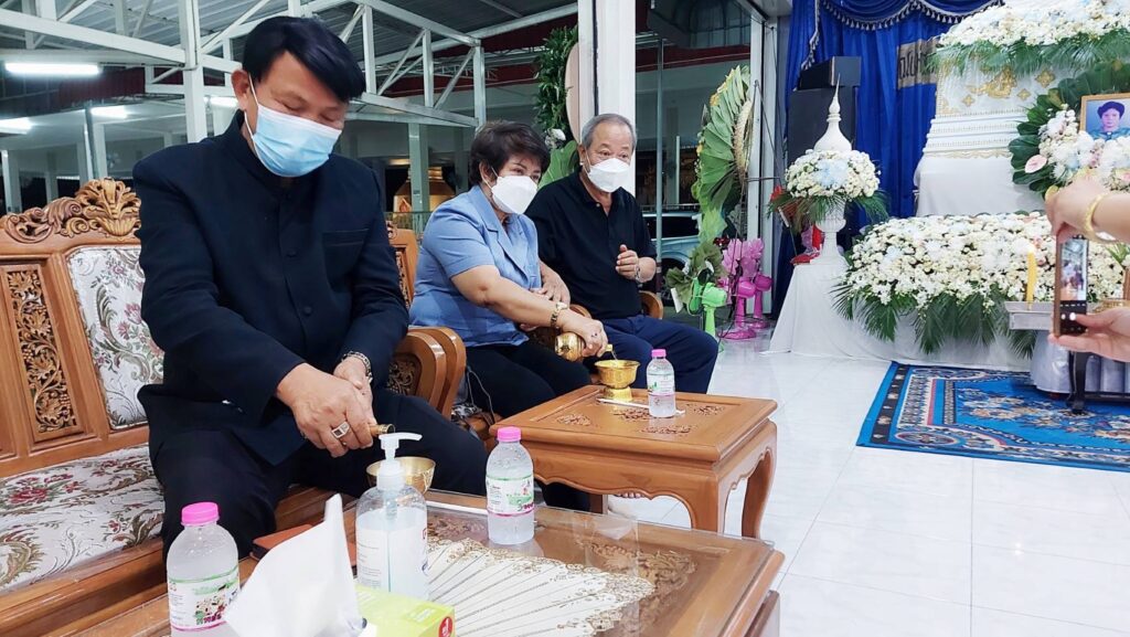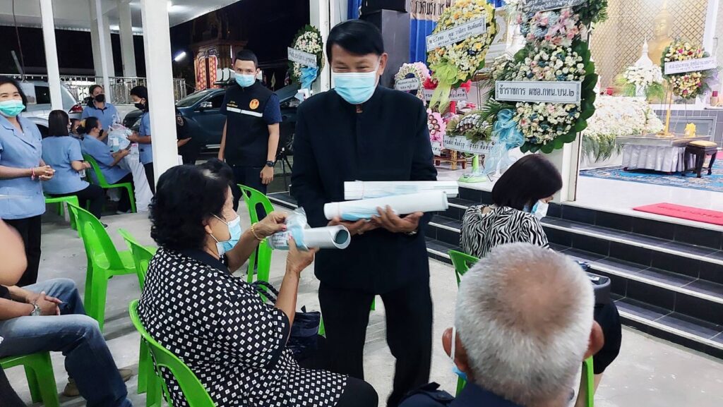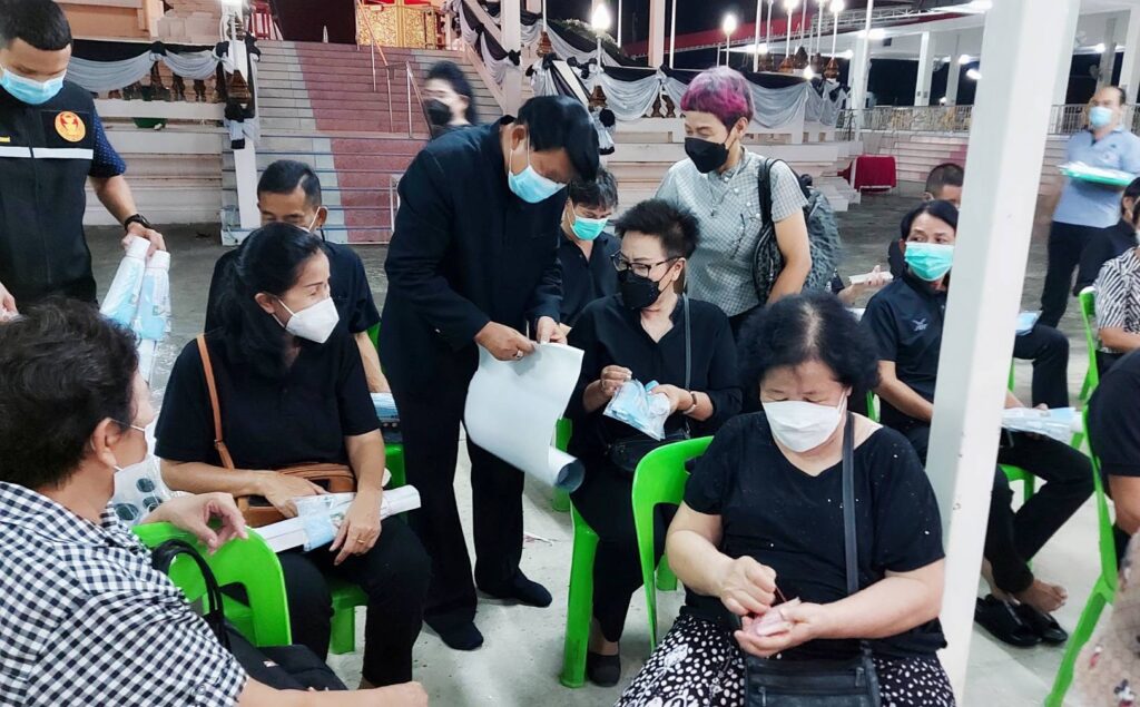 “ทั้งนี้ ต้องขอขอบคุณ ทางห้างร้าน บริษัท และเพื่อนๆทุกคน ที่ได้มอบหน้ากากอานามัย สเปรย์แอลกอฮอ เพื่อมอบ ให้ผู้ที่มาร่วมงานในพิธีสวดอภิธรรม เพื่อใช้สวมใส่ป้องกันการระบาดของโรคโควิด19 ตามมาตรการของกระทรวงสาธารณสุขในครั้งนี้ ด้วยนะครับ”