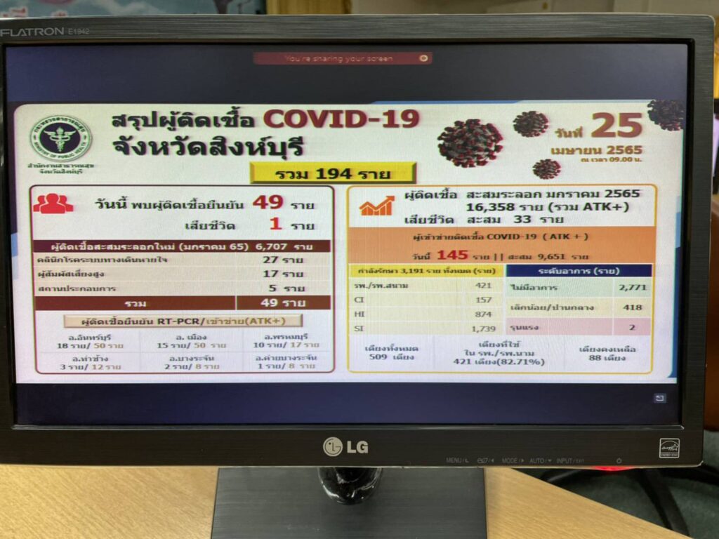 นายชัยชาญ สิทธิวิรัชธรรม ผู้ว่าราชการจังหวัดสิงห์บุรี เป็นประธานการประชุมคณะกรรมการโรคติดต่อจังหวัดสิงห์บุรี ครั้งที่ ๑๘/๒๕๖๕ โดยมี นายสัมฤทธิ์ กองเงิน นายสมชาย ลีหล้าน้อย รองผู้ว่าราชการจังหวัดสิงห์บุรี นายแพทย์โชคชัย สาครพานิช นายแพทย์สาธารณสุขจังหวัดสิงห์บุรี หัวหน้าส่วนราชการ และเจ้าหน้าที่ที่เกี่ยวข้องเข้าร่วมประชุมออนไลน์พร้อมเพรียงกัน ณ ห้องประชุมขุนสรรค์ พันเรือง ชั้น ๕ ศาลากลางจังหวัดสิงห์บุรี (หลังใหม่) เพื่อติดตามสถานการณ์การแพร่ระบาดของโรคติดเชื้อไวรัสโคโรนา 2019 ในจังหวัดสิงห์บุรี และการเตรียมความพร้อมรับมือในการป้องกันการแพร่ระบาดของโรคติดเชื้อไวรัสโควิด-19 โดยที่ประชุมมีข้อสั่งการ ดังนี้