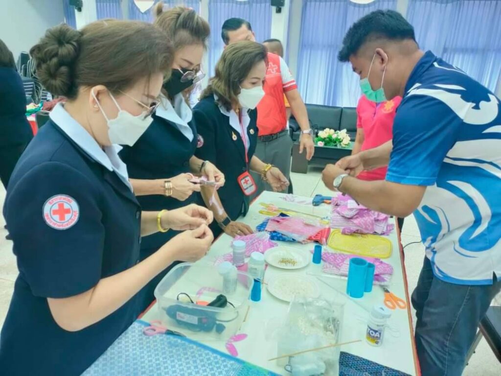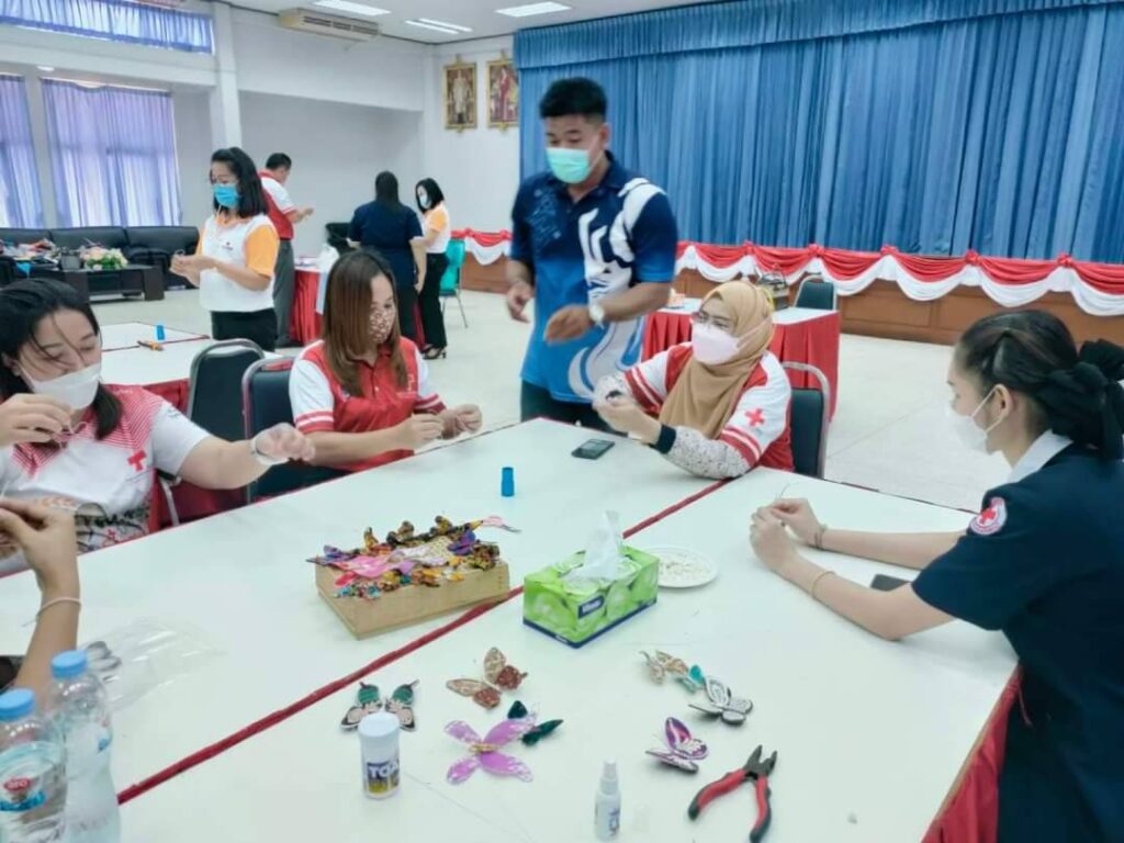 กรรมการเหล่ากาชาดสิงห์บุรี จ่าจังหวัดสิงห์บุรี เสมียนตราจังหวัดสิงห์บุรี เจ้าหน้าที่กาชาดและพนักงานจาก สนง. ปภ.จังหวัดสิงห์บุรี ร่วมเรียนและผลิต”ผีเสื้อแห่งความจงรักภักดีต่อสมเด็จพระนางเจ้าสิริกิติ์ สมเด็จพระบรมราชินีนาถ พระบรมราชชนนีพันปีหลวง” ที่สำนักงานเหล่ากาชาดจังหวัดสิงห์บุรี โดย ปลัดจังหวัดสิงห์บุรี นายอำเภอค่ายบางระจัน ปลัดอาวุโส นำวิทยากรและอุปกรณ์ เสริมทักษะและเรียนรู้