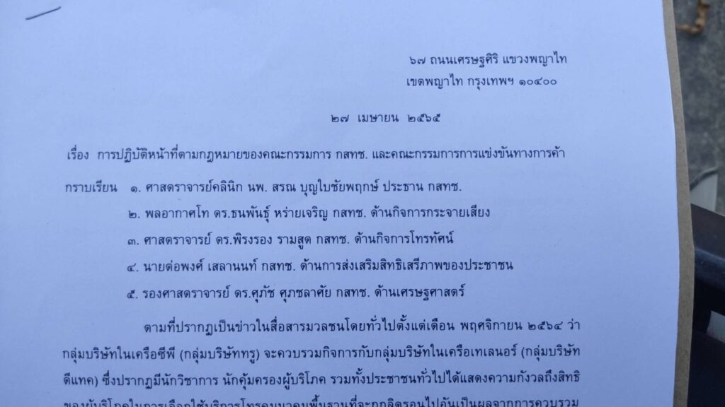 จากกรณีที่มีข่าวตั้งแต่เดือนพฤศจิกายน 2564 ว่ากลุ่มบริษัทในเครือซีพี (กลุ่มบริษัททรู) จะควบรวมกิจการกับกลุ่มบริษัทในเครือเทเลนอร์ (กลุ่มบริษัทดีแทค) ทำให้มีนักวิชาการ นักคุ้มครองผู้บริโภค รวมทั้งประชาชนทั่วไปเกิดความกังวลถึงสิทธิของผู้บริโภคในการเลือกใช้บริการโทรคมนาคมพื้นฐานที่จะถูกลิดรอนไปอันเป็นผลจากการควบรวมกิจการดังกล่าว เนื่องจากตามข้อมูลของ กสทช.ในปัจจุบันมีผู้ใช้บริการโทรศัพท์เคลื่อนที่จํานวน 141 ล้านเลขหมาย ผ่านผู้ให้บริการโทรศัพท์เคลื่อนที่ 3 รายใหญ่ (ไอไอเอส ทรู และดีแทค) 132 ล้านเลขหมาย คิดเป็นส่วนแบ่งการตลาดรวมกันสูงถึงร้อยละ 93 และทั้ง 3 รายล้วนเป็นผู้มีอิทธิพลเหนือตลาดทั้งสิ้น แต่เมื่อมีการควบรวมกิจการระหว่างกลุ่มทรูและกลุ่มดีแทคแล้วจะเป็นรายที่มีส่วนแบ่งการตลาดสูงถึงร้อยละ 57 ซึ่งถือว่าจะเป็นผู้มีอิทธิพลเหนือตลาดเป็นอย่างยิ่ง ที่สําคัญกว่านั้น การควบรวมนี้จะทําให้กลุ่มบริษัทใหม่หลังการควบรวมจะกลายเป็นผู้ถือครองคลื่นความถี่จํานวนมากที่สุดรายหนึ่งของประเทศไทยคือจํานวน 1,260 เมกะเฮิรตซ์ซึ่งขัดต่อเจตนารมณ์ของรัฐธรรมนูญแห่งราชอาณาจักรไทย “มาตรา 60 …คลื่นความถี่เป็นสมบัติของชาติเพื่อใช้ให้เกิดประโยชน์แก่ประเทศชาติและประชาชน … องค์กรดังกล่าว (กสทช.) ต้องจัดให้มีมาตรการป้องกันมิให้มีการแสวงหาประโยชน์จากผู้บริโภคโดยไม่เป็นธรรมหรือสร้างภาระแก่ผู้บริโภคเกินความจําเป็น …