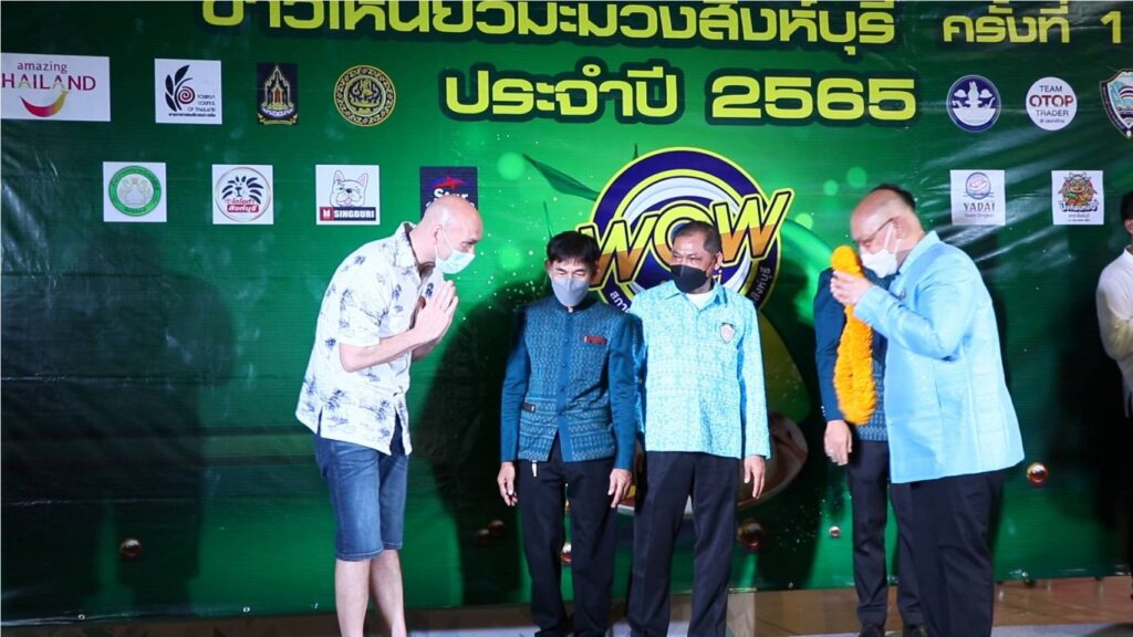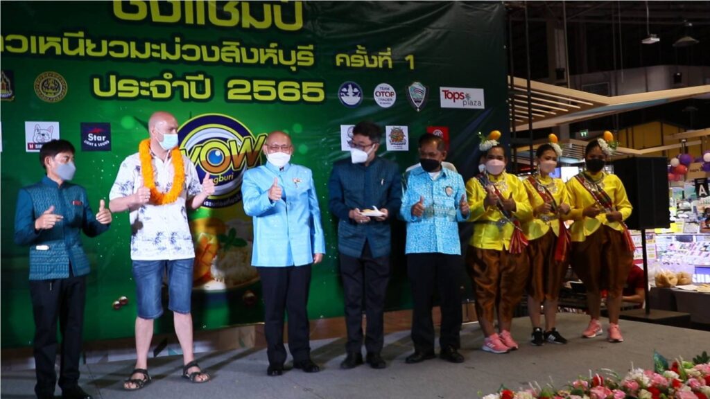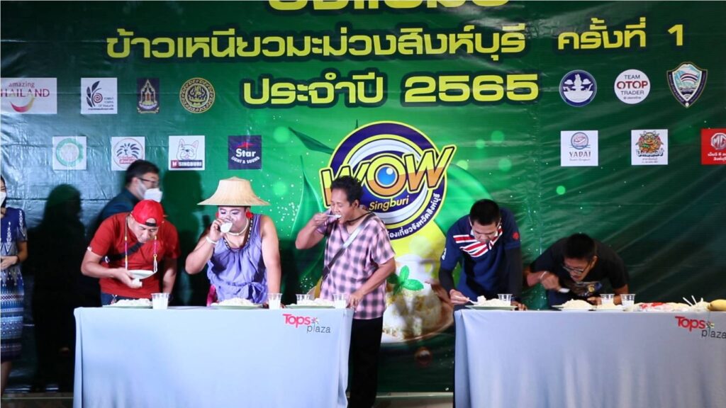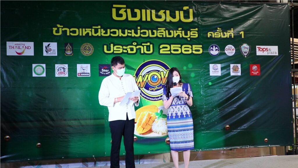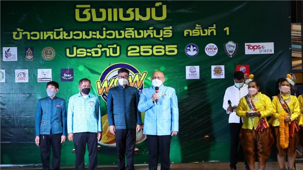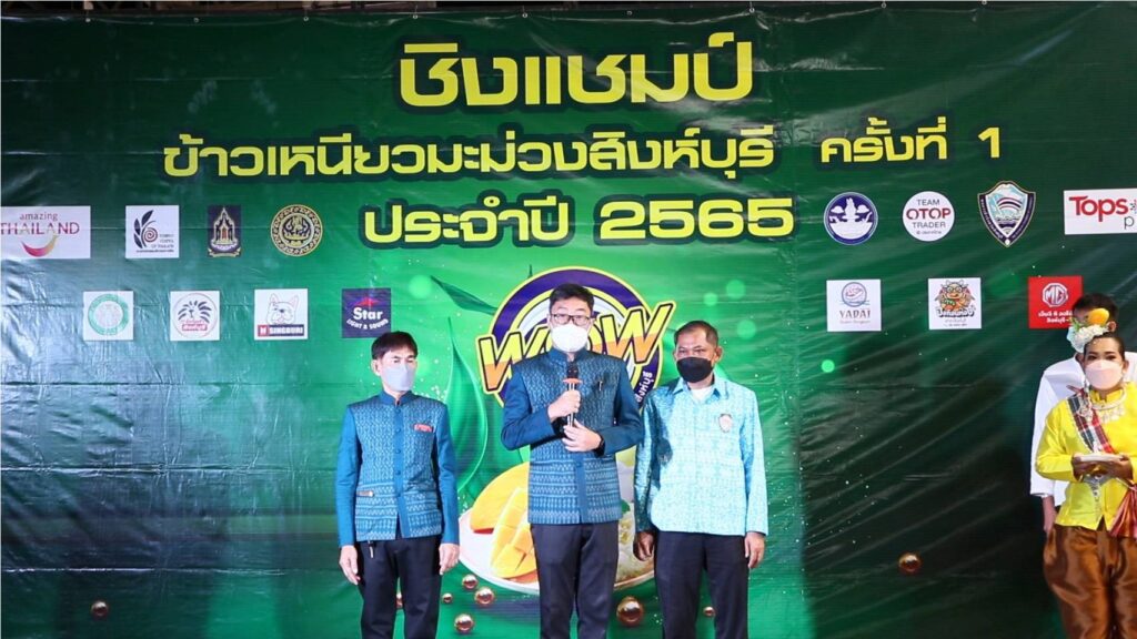 นายชัยชาญ สิทธิวิรัชธรรม ผู้ว่าราชการจังหวัดสิงห์บุรี เปิดกิจกรรม “สืบสานอาหารถิ่น ประชันข้าวเหนียวมะม่วงชิงแชมป์สิงห์บุรี ครั้งที่ ๑ ณ ศูนย์การค้าท็อปส์พลาซ่าสิงห์บุรี จัดโดย สภาอุตสาหกรรมท่องเที่ยวจังหวัดสิงห์บุรีร่วมกับพาณิชย์จังหวัดสิงห์บุรี และสำนักงานวัฒนธรรมจังหวัดสิงห์บุรี และภาคีเครือข่ายภาคเอกชน จัดกิจกรรมประชาสัมพันธ์ส่งเสริมการค้าชุมชน เพื่อเป็นการสนับสนุนร้านขนมหวานในท้องถิ่นให้เป็นที่รู้จักเป็นการช่วยระบายผลผลิตทางการเกษตรของจังหวัดสิงห์บุรี โดยมี นางจิตติวรรณ สิทธิวิรัชธรรม นายกเหล่ากาชาดจังหวัดสิงห์บุรี นายสัมฤทธิ์ กองเงิน รองผู้ว่าราชการจังหวัดสิงห์บุรี นายปัญญา ใช้เฮ็ง นายอำเภอเมืองสิงห์บุรี หัวหน้าส่วนราชการจังหวัด ผู้ประกอบการร้านค้า ทุกภาคส่วน นักท่องเที่ยวชาวต่างชาติ และประชาชน ร่วมกิจกรรมชมการแข่งขันกินจุข้าวเหนียวมะม่วงและร้านค้าชื่อดังในจังหวัดสิงห์บุรีมาประชันข้าวเหนียวมะม่วง บรรยากาศเต็มไปด้วยเสียงเชียร์สร้างความสนุกสนานคึกคักตลอดทั้งงาน เป็นการกระตุ้นเศรษฐกิจและส่งเสริมการท่องเที่ยวจังหวัดสิงห์บุรี ช่วงโควิด-19