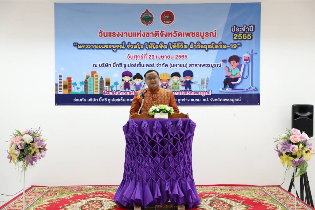 นายไกรสร ลาภตระการ สวัสดิการและคุ้มครองแรงงานจังหวัดเพชรบูรณ์ กล่าวว่าวันที่ 1 พฤษภาคมของทุกปี เป็นวันแรงงานแห่งชาติ การจัดกิจกรรมในวันแรงงานแห่งชาติเป็นการรณรงค์ประชาสัมพันธ์ ให้นายจ้าง ลูกจ้าง ประชาชนผู้ใช้แรงงาน ได้ตระหนักถึงคุณประโยชน์ของผู้ใช้แรงงานที่ทำประโยชน์แก่เศรษฐกิจของประเทศ และเพื่อให้เกิดความสมานฉันท์และความสัมพันธ์ขององค์กรนายจ้างองค์กรลูกจ้าง สำนักงานสวัสดิการและคุ้มครองแรงงานจังหวัดเพชรบูรณ์ จึงร่วมกับชมรม จป. เครือข่ายแรงงาน นายจ้าง ลูกจ้าง ในจังหวัดเพชรบูรณ์จัดกิจกรรมวันแรงงานแห่งชาติประจำปี 2565 ภายใต้ชื่องาน”แรงงานเพชรบูรณ์ร่วมใจ ให้โลหิต ให้ชีวิตฝ่าวิกฤตโควิด-19 โดยมีกิจกรรมประกอบด้วย การบริจาคโลหิต การรณรงค์ต่อต้านยาเสพติด ซึ่งนอกจากจะเป็นการยกย่องเชิดชูคุณประโยชน์ของผู้ใช้แรงงานแล้ว ยังเป็นการพัฒนาคุณภาพชีวิต เพื่อสร้างความสุขให้แก่แรงงานประชาชน และสังคมส่วนรวมเป็นการสร้างจิตสำนึก ความร่วมมือระหว่างภาคราชการนายจ้างและลูกจ้าง