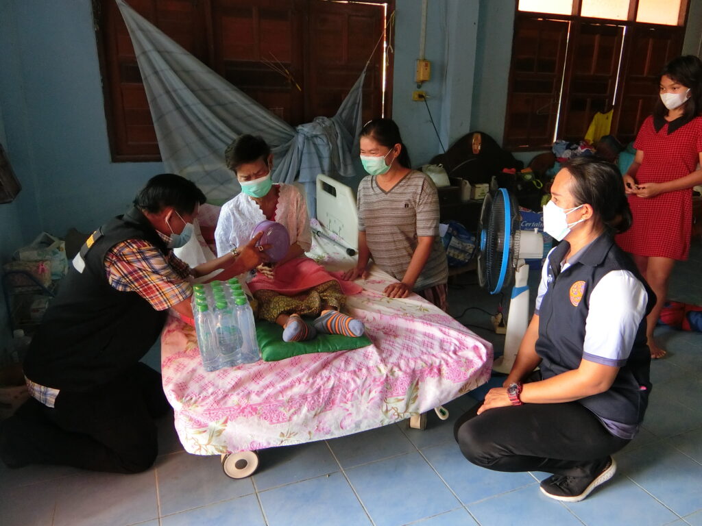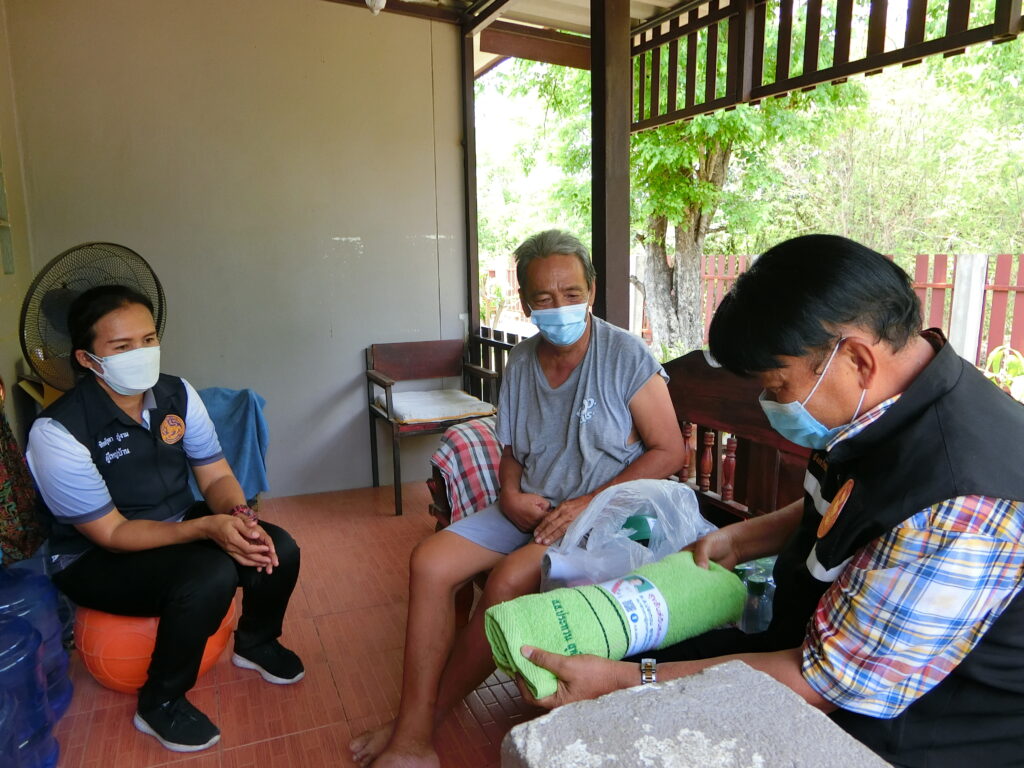 ช่วยเหลือตนเองได้ โดยได้มอบถุงยังชีพ หน้ากากอนามัย แอลกอฮอล์เจล และผ้าเช็ดตัวเพื่อเป็นการเยี่ยมเยียนให้กำลังใจ เป็นการช่วยเหลือเบื้องต้น แก่ประชาชนในเขตพื้นที่ดังกล่าว