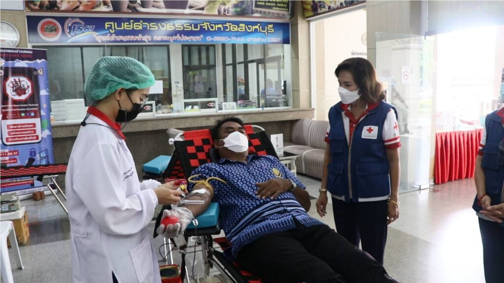 วันที่ 29 เมษายน 2565 เหล่ากาชาดจังหวัดสิงห์บุรี ร่วมกับศูนย์บริการโลหิตแห่งชาติที่ 2 จังหวัดลพบุรี รับบริจาคโลหิต ตั้งแต่ 8.30-12.00 น. ณ บริเวณห้องโถงชั้น 1 ศาลากลางจังหวัดสิงห์บุรี อาคาร 5 ชั้น มีข้าราชการ พนักงานราชการ ลูกจ้าง และประชาชน มาลงทะเบียนรับบัตรคิวบริจาคโลหิตกันอย่างต่อเนื่อง โดยมีทีมแพทย์จากภาคบริการโลหิตแห่งชาติที่ 2 จังหวัดลพบุรี และเหล่ากาชาดจังหวัดสิงห์บุรี มาให้บริการและอำนวยความสะดวกให้กับผู้ที่มาบริจาคโลหิตเพื่อสำรองโลหิตให้กับผู้ป่วยต่างๆที่จำเป็นต้องได้รับโลหิตในการรักษา ได้แก่ ผู้ป่วยโรคเลือด โรคมะเร็ง ผ่าตัด คลอดบุตร อุบัติเหตุ และอื่นๆ ที่ต้องการเลือด