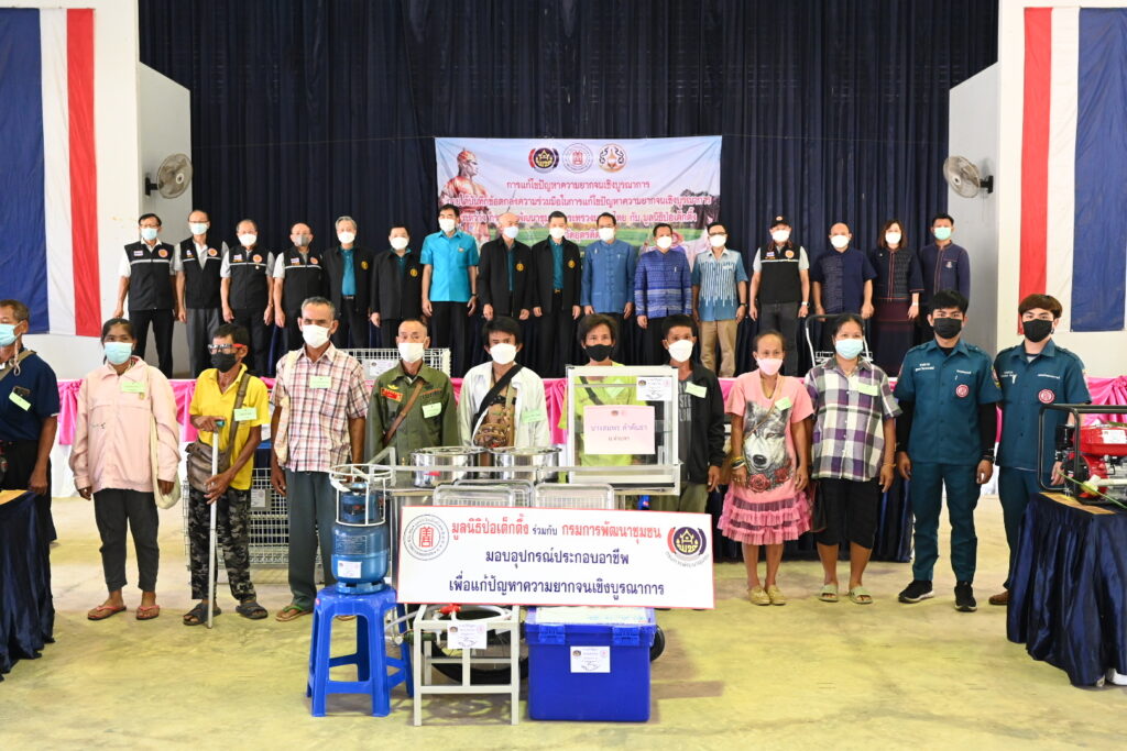 ระหว่างวันที่ 26-27 เมษายน 65 มูลนิธิป่อเต็กตึ๊ง โดย นายวิชิต ชินวงศ์วรกุล รองประธานกรรมการ เป็นประธานในพิธี พร้อมด้วย นายสุรพงษ์ เตชะหรูวิจิตร กรรมการและรองเลขาธิการ นายนิพนธ์ โชคภิรมย์วงศา กรรมการปฏิคม และนายชาญกิจ วิทยาวรากรณ์ กรรมการ ร่วมในพิธีมอบอุปกรณ์ประกอบอาชีพให้กับครัวเรือนยากจนในพื้นที่จังหวัดแพร่ โดยมี นายสมหวัง พ่วงบางโพ ผู้ว่าราชการจังหวัดแพร่ และ นายนิวัติ น้อยผาง รองอธิบดีกรมการพัฒนาชุมชน เป็นประธานร่วมในพิธี พร้อมด้วยคณะมูลนิธิร่วมใจจังหวัดแพร่ ร่วมในพิธี ณ บริเวณหอประชุมที่ว่าการอำเภอลอง จังหวัดแพร่ และมอบอุปกรณ์ประกอบอาชีพให้กับครัวเรือนยากจนในพื้นที่จังหวัดอุตรดิตถ์ โดยมี นายพยงค์ ยาเภา รองผู้ว่าราชการจังหวัดอุตรดิตถ์ และ นายนิวัติ น้อยผาง รองอธิบดีกรมการพัฒนาชุมชน พร้อมด้วย คณะมูลนิธิอุตรดิตถ์สงเคราะห์ ร่วมในพิธี ณ บริเวณหอประชุมที่ว่าการอำเภอท่าปลา จังหวัดอุตรดิตถ์ รวมมูลนิธิฯ มอบอุปกรณ์ประกอบอาชีพให้กับครัวเรือนยากจนทั้งสิ้น 2 จังหวัด 19 ครัวเรือน คิดเป็นมูลค่า จำนวน 337,420 บาท (สามแสนสามหมื่นเจ็ดพันสี่ร้อยยี่สิบบาทถ้วน) เพื่อส่งเสริมและสนับสนุนอาชีพแก่ครัวเรือนยากจนสามารถประกอบอาชีพเลี้ยงตนเองและครอบครัว ดำเนินชีวิตตามหลักปรัชญาเศรษฐกิจพอเพียง ภายใต้ ”บันทึกข้อตกลงความร่วมมือการแก้ไขปัญหาความยากจนเชิงบูรณาการ” ร่วมกับกรมการพัฒนาชุมชน กระทรวงมหาดไทย