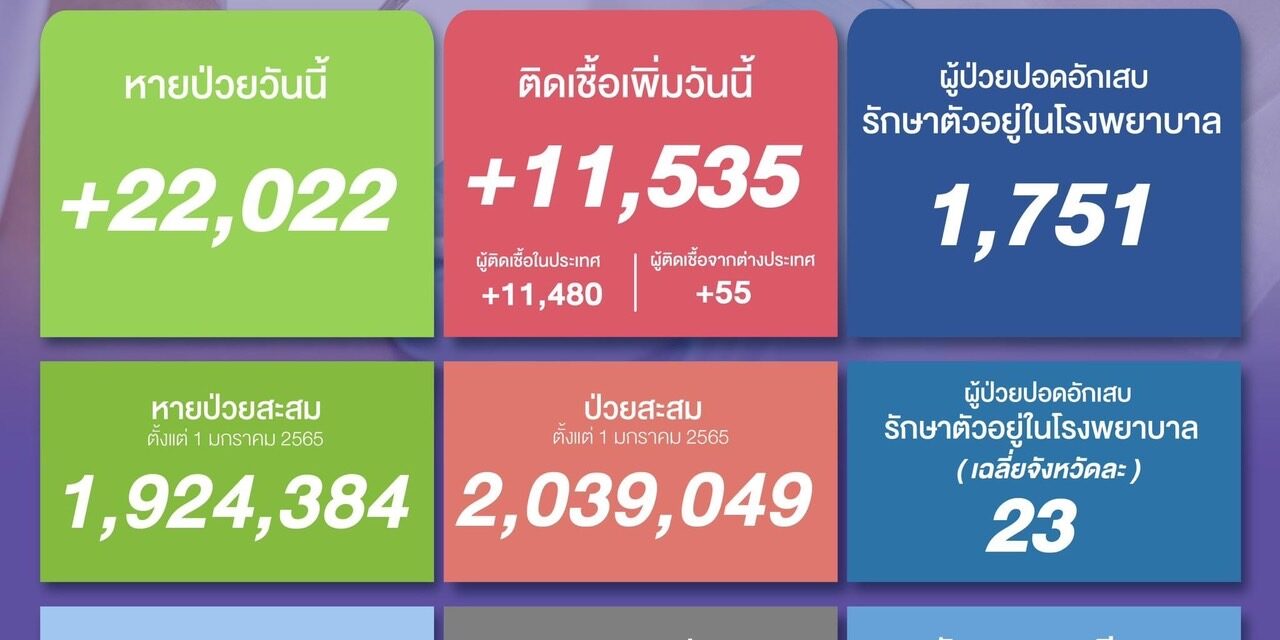 ผู้ป่วยสะสม 2,039,049 ราย (ตั้งแต่ 1 มกราคม 2565)