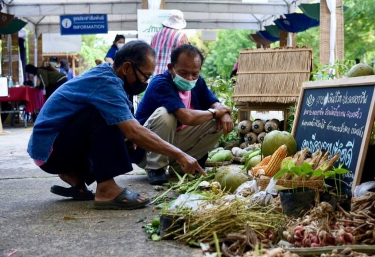 ชม ช้อป จุใจ เลือกซื้อสินค้าเกษตรปลอดภัย ผลิตผลเกษตรอินทรีย์มีคุณภาพ กว่า 100 ร้านค้า ทั้งของกิน ของใช้ ผลิตภัณฑ์ แปรรูป และพลาดไม่ได้กับเมนูจากผลไม้ตามฤดูกาล อาทิ ข้าวเหนียวมะม่วงหลากหลายสายพันธุ์ พร้อมด้วยเมนูพิเศษมะม่วงบ่ายโบก ตำรับข้าวเหนียวมะม่วงฉบับลูกอีสาน โดยเกษตรกรผู้น้อมนำหลักปรัชญาของเศรษฐกิจพอเพียงมาใช้ในการดำเนินชีวิต นำมาจัดจำหน่ายในราคามิตรภาพ