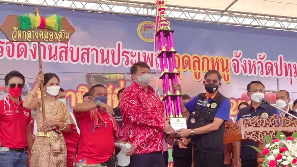 พล.ต.ท.คำรณวิทย์ ธูปกระจ่าง นายก อบจ.ปทุมธานี กล่าวว่า วันนี้เป็นอีกวันที่ผมตื้นตันใจ และต้องขอบคุณทุกคนทุกภาคส่วนโดยน้อง ๆ ในองค์การบริหารส่วนจังหวัดปทุมธานี นายกองค์การบริหารส่วนท้องถิ่นหลาย ๆ ท่านทุกพื้นที่ที่ได้จัดริ้วขบวนมาร่วม ท่าน สจ.ทุกพื้นที่ได้ช่วยกันจนงานสำเร็จ รวมถึงขอบคุณท่านวัฒนธรรมจังหวัดและท่านท่องเที่ยวและกีฬาจังหวัดที่ให้คำแนะนำตลอด สืบเนื่องจากประเพณีจุดลูกหนูที่จัดกันจะไม่มีการจัดขบวนแห่ที่ยิ่งใหญ่เหมือนวันนี้รวมถึงมีการจัดนิทรรศการประวัติความเป็นมาของประเพณีลูกหนูโดยทางโรงเรียนสามโคกได้จัดขึ้น นอกจากนี้ประชาชนที่มาดูการจุดลูกหนูจะมีเต้นท์ ผมถือว่าวันนี้จัดได้สมบูรณ์ ซึ่งในปีต่อไปจะมีการถ่ายทอดสดทางทีวี ให้ทุกคนในประเทศไทยได้เห็นและอยากมาดูงานประเพณีที่จังหวัดปทุมธานีเป็นการเผยแพร่ประเพณีที่สำคัญและเป็นหนึ่งเดียวมีที่จังหวัดปทุมธานีให้สืบสวนอยู่คู่ปทุมธานีตลอดไป.