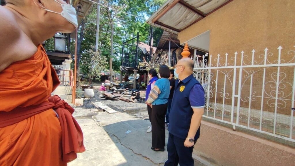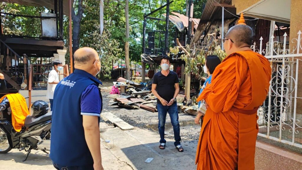 วันนี้ (30 เม.ย. 65) เวลาประมาณ 13:30 น. นายชัยชาญ สิทธิวิรัชธรรม ผู้ว่าราชการจังหวัดสิงห์บุรี พร้อมด้วย นางจิตติวรรณ สิทธิวิรัชธรรม นายกเหล่ากาชาดจังหวัดสิงห์บุรี นายอำเภออินทร์บุรี สำนักพุทธศาสนาจังหวัดสิงห์บุรี ได้ลงพื้นที่มาตรวจเยี่ยมและให้กำลังใจที่วัดดงยาง อำเภออินทร์บุรี ที่เกิดเหตุไฟฟ้าลัดวงจร ไฟไหม้กุฏิและลุกลามไปถึง 2 หลัง และทราบข่าวว่าพระภิกษุไม่สามารถเอาของมีค่าในกุฏิออกมาได้เลย ได้สบงจีวรมาอย่างเดียว ท่านผู้ว่าราชการจังหวัดสิงห์บุรี จึงได้นำผ้าไตรจีวร พร้อมกับปัจจัยมอบให้กับพระภิกษุทั้ง 2 รูป เพื่อบรรเทาความเดือดร้อนในเบื้องต้นก่อน พร้อมกับสั่งให้สำนักพุทธศาสนาสำรวจหางบประมาณมาช่วยในการปลูกสร้างอีกด้วย