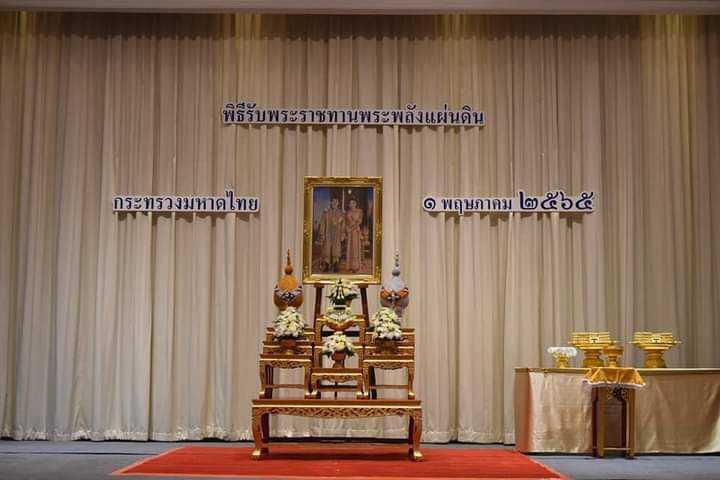 พระบาทสมเด็จพระเจ้าอยู่หัว ทรงพระกรุณาโปรดเกล้าฯ ให้สำนักพระราชวังจัดพิธีพระราชทาน “พระพลังแผ่นดิน” ให้แก่ปลัดกระทรวงมหาดไทย ผู้แทนส่วนราชการ และหน่วยงานต่าง ๆ เมื่อวันอังคารที่ 19 เมษายน 2565 ณ อาคารบัญชาการ หน่วยราชการในพระองค์ 904 พระที่นั่งอัมพรสถาน เพื่อเชิญไปจัดพิธีรับพระราชทานพระพลังแผ่นดินให้แก่ผู้ว่าราชการจังหวัด ทุกจังหวัดทั่วประเทศ ซึ่งในวันนี้ ผู้ว่าราชการจังหวัดทุกจังหวัดได้เข้ารับพระราชทานพระพลังแผ่นดินเบื้องหน้าพระบรมฉายาลักษณ์พระบาทสมเด็จพระเจ้าอยู่หัว และพระฉายาลักษณ์สมเด็จพระนางเจ้าฯ พระบรมราชินี รวมจำนวน 1,172 องค์ เพื่อเชิญไปจัดพิธีรับพระราชทานพระพลังแผ่นดินให้แก่รองผู้ว่าราชการจังหวัด ปลัดจังหวัด และนายอำเภอ ณ สถานที่ที่จังหวัดกำหนดต่อไป