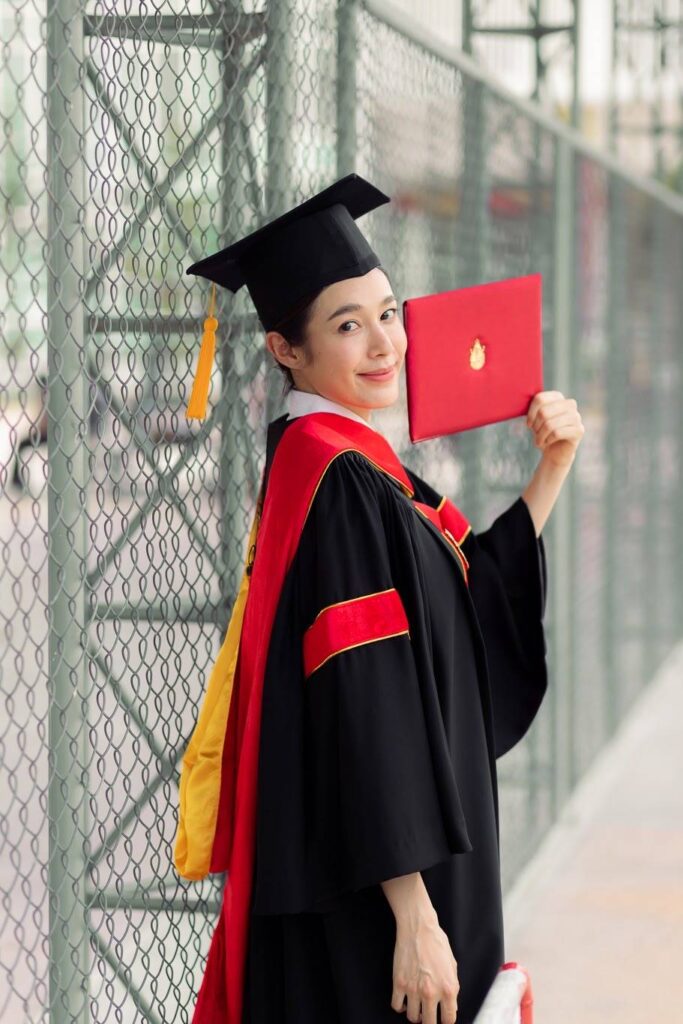 “รู้สึกดีใจและปลาบปลื้มใจมากค่ะ ถึงวันนี้สักที เพราะจบมาเกือบ 2 ปีแล้วค่ะ ก็รอเข้ารับปริญญา ด้วยสถานการณ์โควิดด้วยค่ะ มาวันนี้ก็ดีใจมากๆ เหมือนเราได้ทำความสำเร็จด้านการศึกษาไปอีกขั้นหนึ่ง ตอนนี้เปิ้ลก็เรียนต่อในระดับปริญญาโท คณะนิเทศศาสตร์ มหาวิทยาลัยกรุงเทพธนบุรี ก็เป็นอีกหนึ่งความฝันเหมือนกันค่ะ สัญญาว่าจะตั้งใจเรียน และนำวิชาที่ได้มาปรับใช้ในชีวิตประจำวัน เพราะเปิ้ลก็ยังทำงานในวงการบันเทิง มีละคร มีซีรีส์ ตอนนี้ก็รอ พระธรรมบทเดอะซีรีส์ ตอน สามาวดี ผู้ไม่ตาย ออกอากาศค่ะ ทราบมาว่าจะออกอากาศในช่วงวันวิสาขบูชาที่จะถึงนี้ เปิ้ลก็ขอฝากละครธรรมะเรื่องนี้ด้วยนะคะ ขอบพระคุณทุกกำลังใจที่มอบให้เปิ้ลด้วยค่ะ”