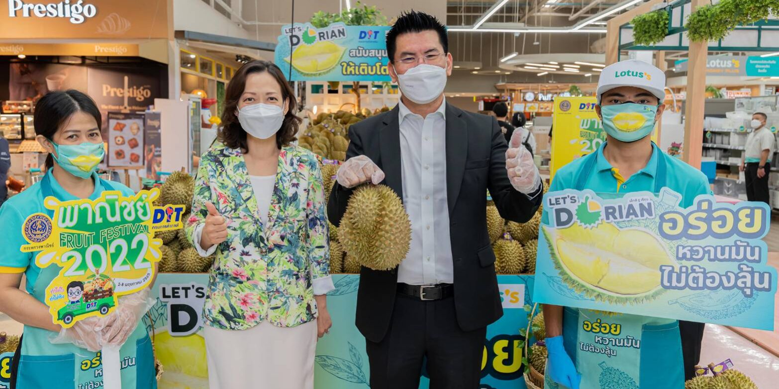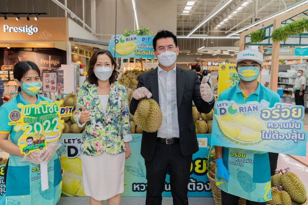 นางสาวสลิลลา สีหพันธุ์ ประธานเจ้าหน้าที่บริหารด้านความยั่งยืน โลตัส (คนที่ 2 จากซ้าย) และนายวัฒนศักย์ เสือเอี่ยม อธิบดีกรมการค้าภายใน กระทรวงพาณิชย์ (คนที่ 3 จากซ้าย) ร่วมเปิดตัวเทศกาลทุเรียนโลตัส ช่วยเกษตรกรกระจายผลผลิตส่งตรงถึงมือลูกค้า โดยเป็นโครงการความร่วมมือระหว่างกระทรวงพาณิชย์และโลตัส ซึ่งโลตัสช่วยสนับสนุนและส่งเสริมการตลาด ช่องทางการจำหน่ายสินค้าให้กับเกษตรกร รับซื้อทุเรียน 3 ล้านกิโลกรัม และจัดเทศกาลทุเรียนที่โลตัส ไฮเปอร์มาร์เก็ต ทั่วประเทศ เพื่อให้ลูกค้าและประชาชนสามารถเข้าถึงทุเรียนคุณภาพสูงในราคาที่เอื้อมถึงได้ คัดสรรทุเรียนมาจากแหล่งที่ดีที่สุด ตั้งแต่กระบวนการคัด ตัด ไปจนถึงการขนส่งไปยังสาขาที่ใช้รถควบคุมอุณหภูมิ คงความสดใหม่ โดยเทศกาลทุเรียนเป็นส่วนหนึ่งของแผนงานสนับสนุนเกษตรกรของโลตัส ในการรับซื้อผลไม้ตามฤดูกาล ซึ่งรวมถึงมังคุด เงาะ มะม่วง ลำไย ลิ้นจี่ ลองกอง และอื่นๆ โดยโลตัสวางแผนในการรับซื้อทั้งหมด 18 ล้านกิโลกรัมในปีนี้ เพื่อสนับสนุนเกษตรกรไทยให้เติบโตไปด้วยกันอย่างยั่งยืน