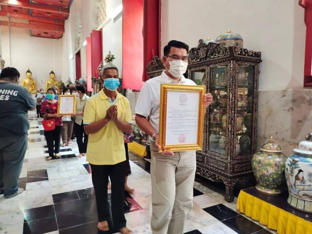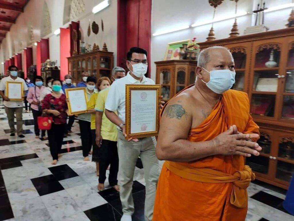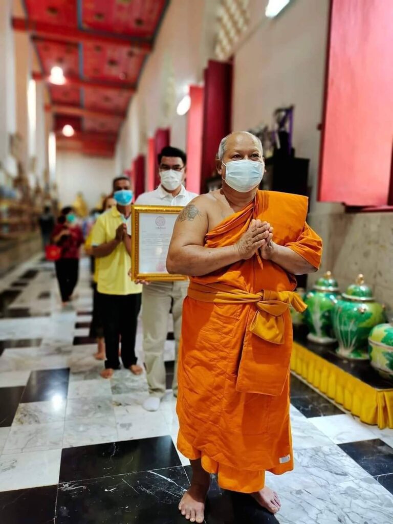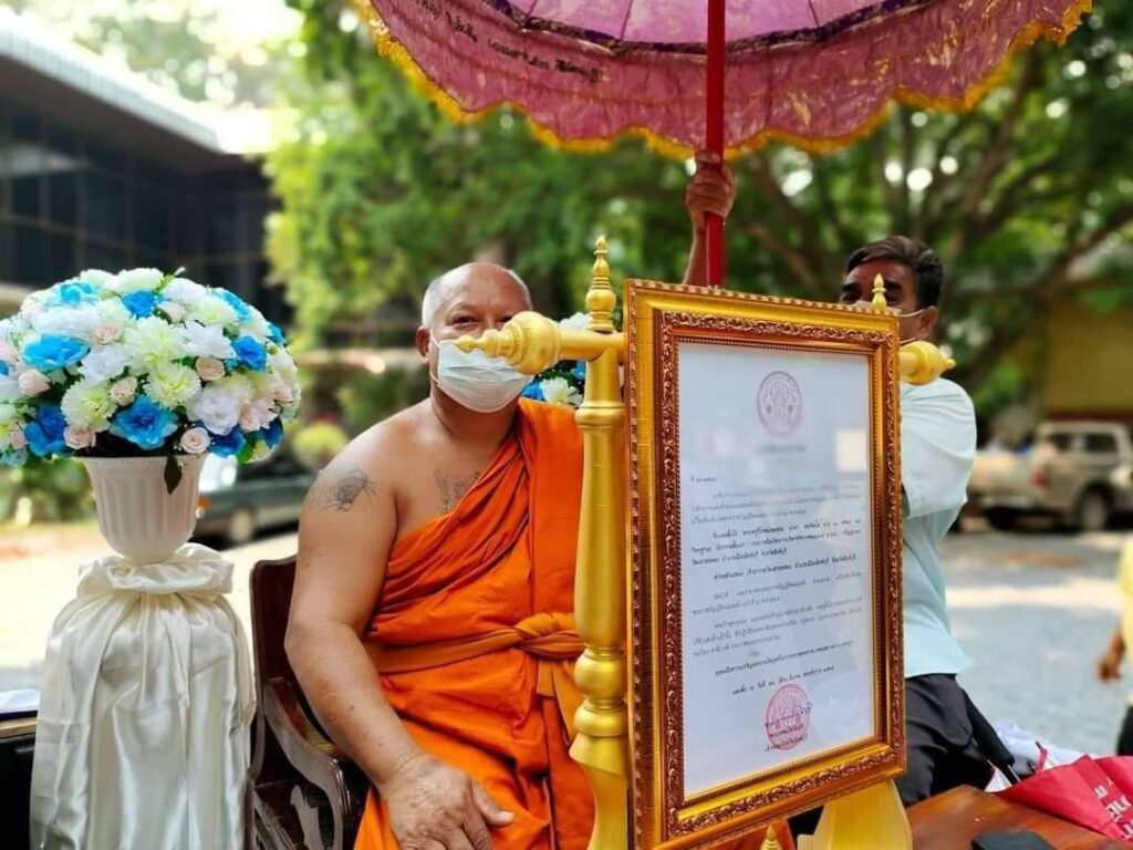 พระเทพปริยัติสุธี เจ้าคณะจังหวัดสิงห์บุรี เจ้าอาวาสวัดพระนอนจักรสีห์ ได้มอบตราตั้งเป็นเจ้าอาวาสวัดเสาธงทอง ให้กับพระครูวิโรจน์เขมคุณ มีนายวิเชษฐ์ โกมล กำนันตำบลบางมัญและคณะศิษย์ยานุศิษย์ร่วมมารับ โดยมีคณะญาติโยมทั้งหลายพร้อมใจกันจัดขบวนตอนรับกลับสู่วัดเสาธงทอง