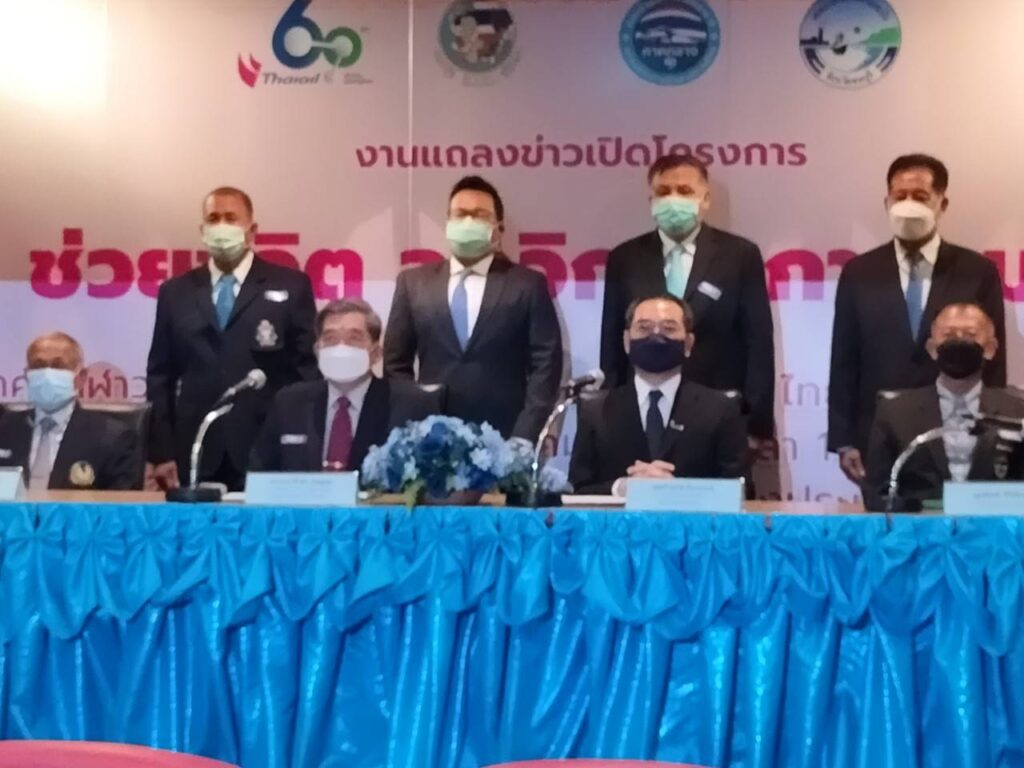 พลเอก ศิริชัย ดิษฐกุล อุปนายกสมาคมกีฬาว่ายน้ำแห่งประเทศไทย พร้อมด้วย พล.อ.เจริญ นพสุวรรณ เลขาธิการสมาคมกีฬาว่ายน้ำแห่งประเทศไทย,ดร.ถิรยุทธ ลิมานนท์ ผู้จัดการฝ่ายกิจการสัมพันธ์บริษัทไทยออยล์ จํากัด (มหาชน) และ นายสันติ ศิริตันหยง รองนายกเทศมนตรีนครแหลมฉบัง ร่วมกันแถลงข่าวเปิดตัวโครงการ