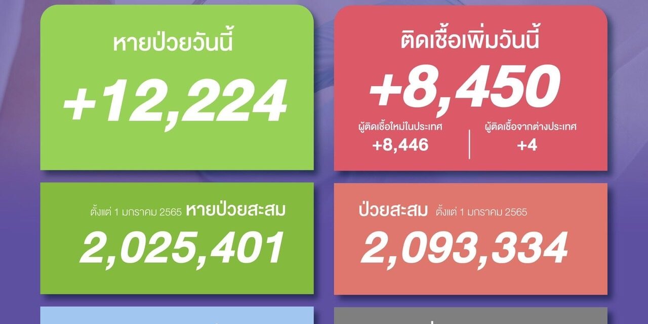 หายป่วยสะสม 2,025,401 ราย (ตั้งแต่ 1 มกราคม 2565)