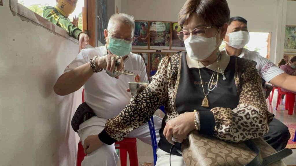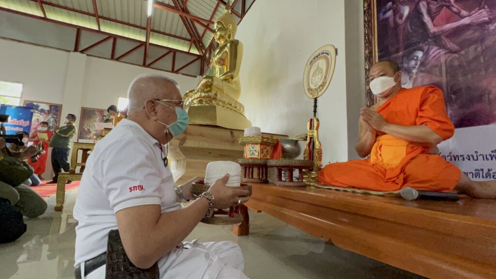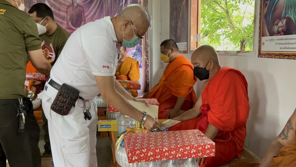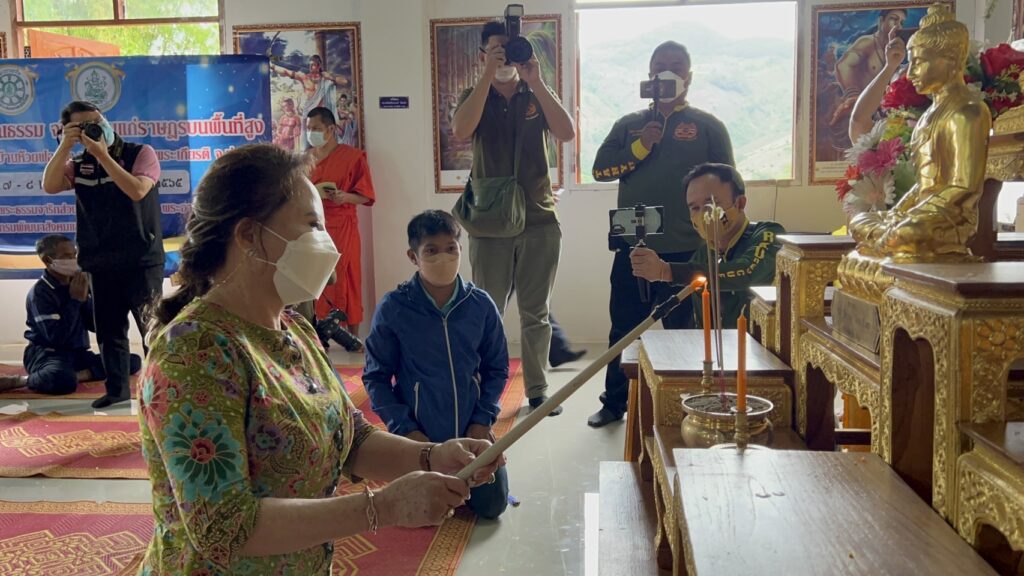 ท่ามกลางสายฝนที่โปรยปรายตลอดเส้นทาง โดยเดินทางจากตัวเมืองน่าน ขึ้นเขาในเส้นทางกว่า 80 กิโลเมตร ใช้เวลาเดินทางกว่า 5 ชั่วโมง นอกจากนั้นทางคณะยังเดินทางไปที่วัดพระธรรมจาริกบ้านห้วยฟอง ตำบลขุนน่าน อำเภอเฉลิมพระเกียรติ จังหวัดน่าน เพื่อถวายพระพุทธรูป ปางมารวิชัย ขนาดหน้าตัก กว้าง 59 นิ้ว ที่ได้หล่อไว้เมื่อวันที่ 1 กันยายน 2563 เนื่องในวาระครบ 50 ปี มูลนิธิร่วมกตัญญู