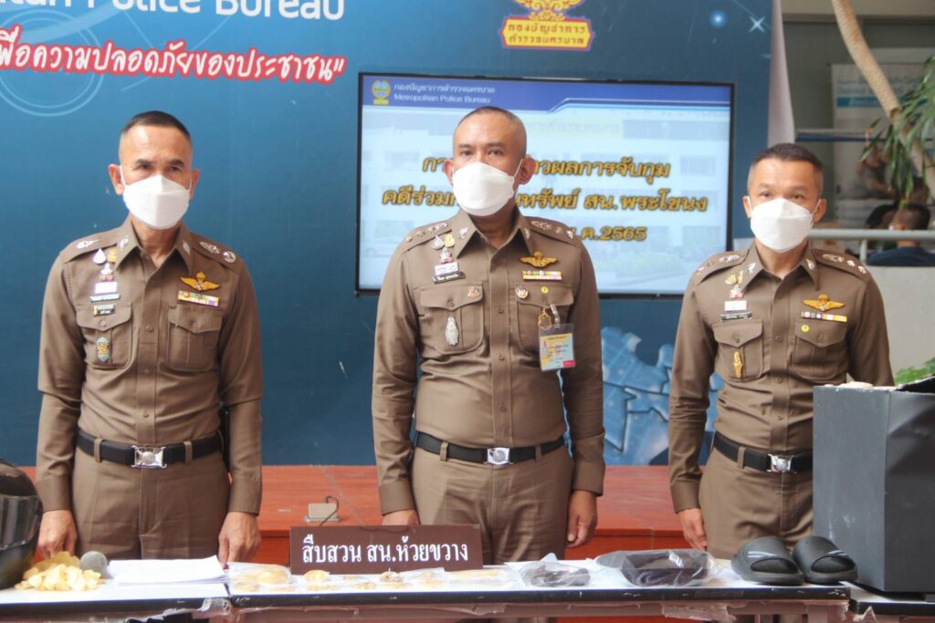 ผกก.สน.พระโขนง,กก.สส.บก.น.1,กก.สส.บก.น.5 พร้อมฝ่ายสืบสวน สน.ห้วยขวาง และสน.พระโขนง ร่วมแถลงข่าวผลการจับกุมผู้ต้องหางัดตู้เซฟนายธนาคาร รวมมูลค่ากว่า 10 ล้านบาท ในเขตพื้นที่ สน.ห้วยขวาง และจับกุมผู้ต้องหาคดีร่วมกันปล้นทรัพย์ ในเขตพื้นที่ สน.พระโขนง