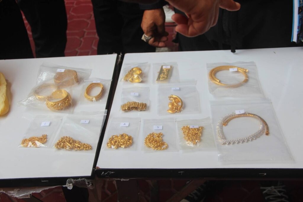 ประกอบด้วย ทองคำรูปพรรณ จำนวน 17 รายการ ราคาประมาณ 2,370,000 บาท,ทองคำแท่ง จำนวน 2 รายการ ราคาประมาณ 450,000 บาท,ชุดเครื่องประดับ จำนวน 17 รายการ ราคาประมาณ 1,040,000 บาท,ธนบัตรรัฐบาลไทย จำนวน 2 รายการ ราคาประมาณ 22,110 บาท,ชุดเครื่องคอมพิวเตอร์ จำนวน 2 เครื่อง ราคาประมาณ 130,000 บาท,โทรศัพท์มือถือ จำนวน 2 เครื่อง ราคาประมาณ 45,000 บาท,บัตรกดเงินสด (ATM) ธนาคารไทยพาณิชย์ จำนวน 2 ใบ และรายการอื่นๆ จำนวน 9 รายการ รวมทรัพย์สินที่ได้คืนจากการตรวจยึด 2 ครั้งรวมกัน ทั้งสิ้นประมาณ 5,900,000 บาท