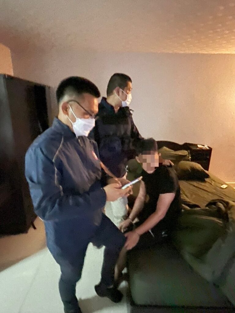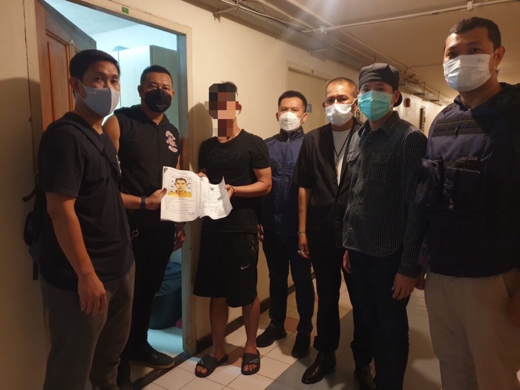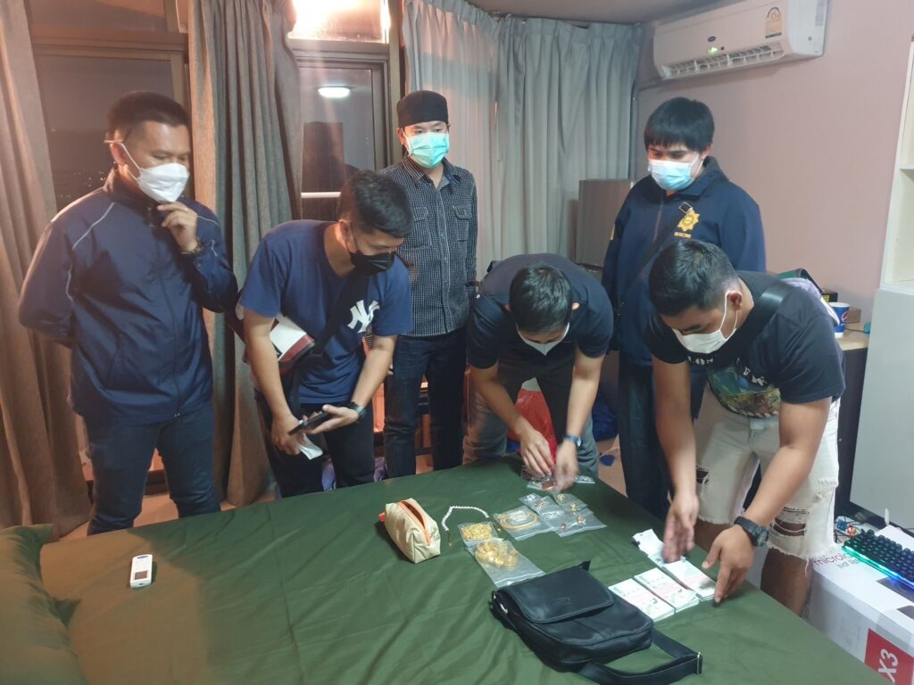 จ้าหน้าที่ตำรวจกก.สส.บก.น.1 และ ฝ่ายสืบสวน สน.ห้วยขวาง ได้ติดตามตัวยังสถานที่ต่างๆ โดยจากการสืบสวนทราบว่า ผู้ต้องหาพักอยู่ที่อพาร์ตเมนต์ ย่านรัตนาธิเบศน์ จังหวัดนนทบุรี เมื่อวันที่ 25 เม.ย.65 เจ้าหน้าที่ตำรวจจึงได้ขอหมายค้น ศาลจังหวัดนนทบุรี เข้าค้นสถานที่ดังกล่าว ผลการตรวจค้นพบทรัพย์สินที่ถูกประทุษร้าย จำนวน 39 รายการ รวมมูลค่าประมาณ 2,100,000 บาท และอาวุธปืน จำนวน 1 กระบอก (อยู่ระหว่างตรวจสอบทะเบียนและดำเนินการต่อไป)