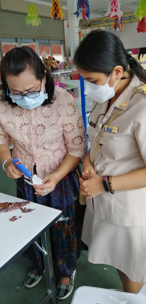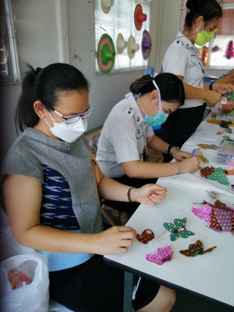 ทั้งนี้ก่อนหน้านี้ได้เริ่มใหัความรู้กับหน่วยงานไปแล้ว 1 รุ่นผู้เข้าร่วม 18 คน และรุ่นต่อไปจะเริ่มตั้งแต่วันจันทร์ ที่ 9 พ.ค. 2565 เป็นต้นไป ขอรบกวนหน่วยงานที่ประสงค์จะประสานทีมงาน ไปให้ความรู้การทำผีเสื้อจากผ้า กรุณาประสานมาที่ คุณดวงพร 095-4983582 หรือ ธนิสร 064-6945545 เพื่อนัดหมายเวลา นะคะ