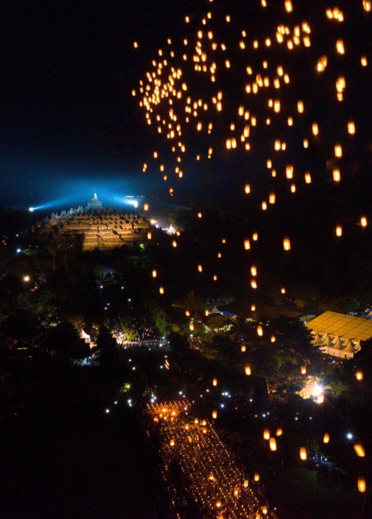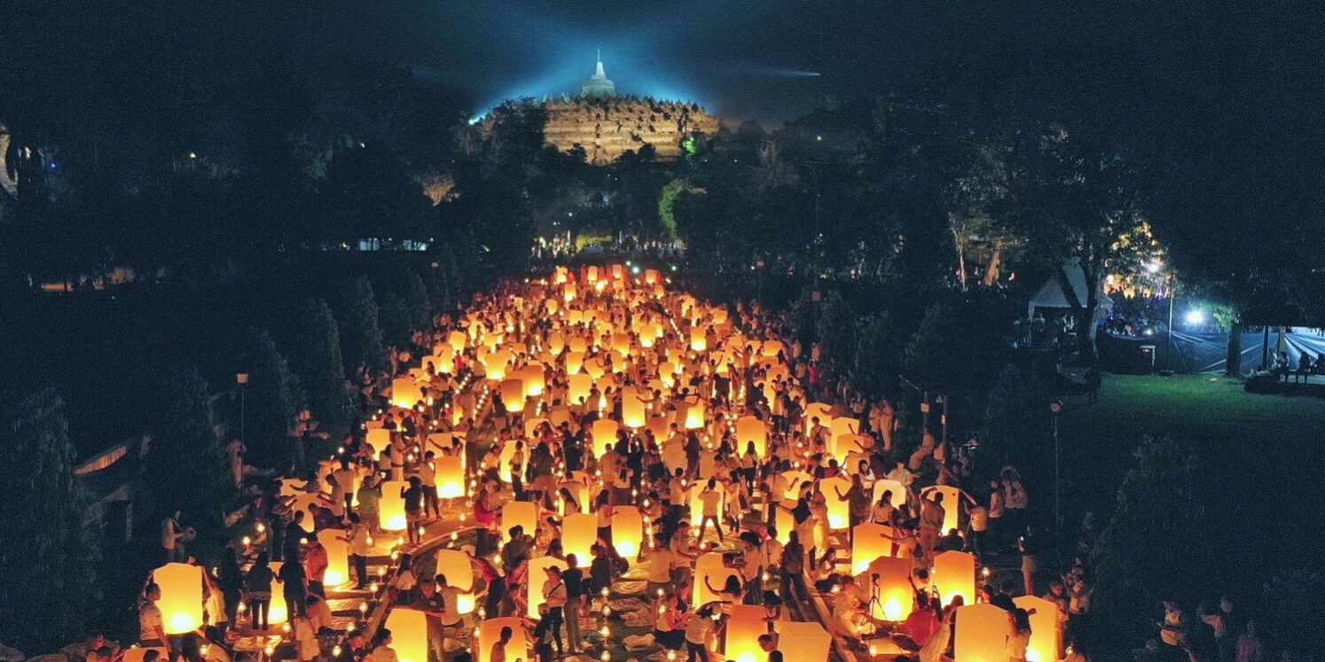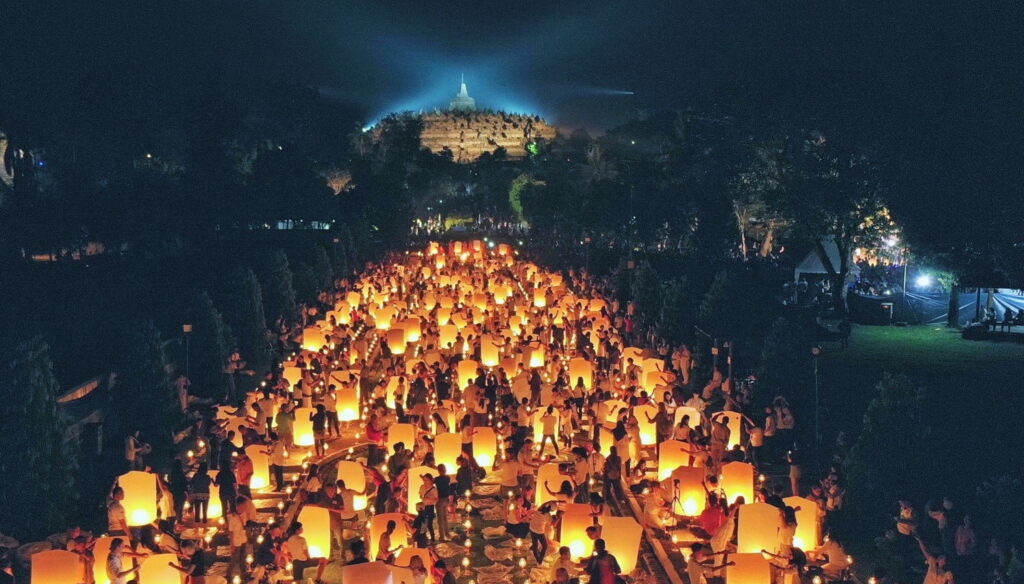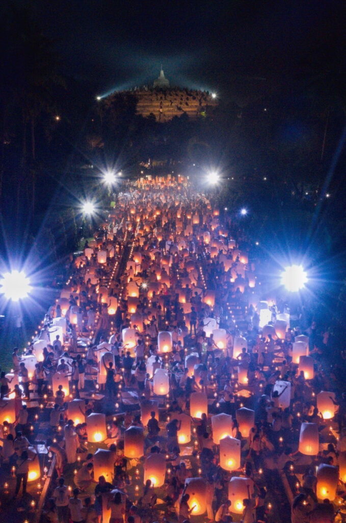 ด้านประเทศอินโดนีเซีย จัด WAISAK NASIONAL LIGHT OF PEACE พิธีจุดโคมประทีป วันวิสาขบูชา ณ มหาเจดีย์บุโรบุโด ในวันจันทร์ 16 พ.ค. 2565 เวลา 7.00-20.00น. โดยมีกิจกรรม ขบวนรถบุปผชาติ พิธีเจริญมนต์ นำนั่งสมาธิ ลั่นฆ้องวิสาขบูชา พรมน้ำพุทธมนต์, พิธี Dharma santi, พิธีลอยโคมถวายพุทธบูชา” พระครูสมุห์สนิทวงศ์กล่าว