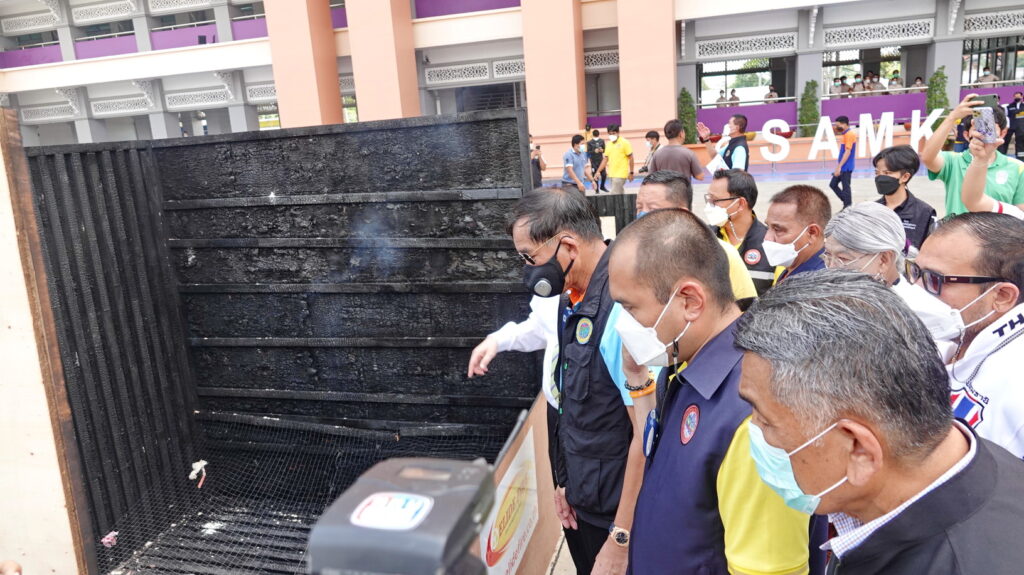 เมื่อเวลา 13.00น. วันที่ 9 พฤษภาคม 2565 ที่โรงเรียนสามโคก ตำบลบ้านงิ้ว อำเภอสามโคก จังหวัดปทุมธานี พล.ต.ท.คำรณวิทย์ ธูปกระจ่าง นายก อบจ.ปทุมธานี , นางรุจศลักษณ์ ธูปกระจ่าง ตั้งวงษ์เลิศ เลขานุการนายก อบจ.ปทุมธานี , ร้อยตำรวจเอก ดร.ตรีลุพธ์ ธูปกระจ่าง นายกเทศมนตรีนครรังสิต , ดร.สุรพงษ์ เป้ากลาง ประธานหอการค้าจังหวัดปทุมธานี ร่วมชมการสาธิตประสิทธิภาพลูกบอลดับเพลิงอัตโนมัติ โดยมี นายภณวัชร์นันท์ ไกรมาตย์ นักประดิษฐ์ เจ้าของ 6 เหรียญทองอัฉริยะโลก ประธานเจ้าหน้าที่บริหาร (CEO) บริษัท อิไลด์ ไฟร์บอล โปร จำกัด และนายกสมาคมนักประดิษฐ์ และนวัตกรรมแห่งประเทศไทย และทีงานบรรยายและทดลองหากเกิดเหตุอัคคีภัย