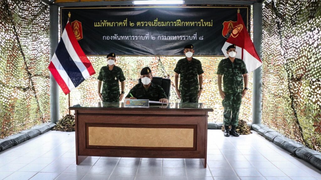 ในโอกาสนี้ แม่ทัพภาคที่ 2 พบปะน้องทหารใหม่ ผลัดที่ 1/65 ทางออนไลน์ผ่านระบบ Zoom Video Conference พร้อมมอบนโยบายกำชับมาตรการการฝึกในสถานการณ์การแพร่ระบาดของโควิด-19 ซึ่งต้องเป็นไปตามนโยบายของกองทัพบก