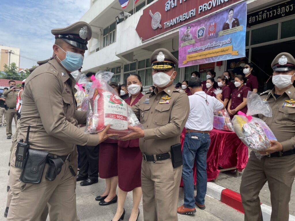 วันที่ 10 พฤษภาคม 2565 พล.ต.ต.ชุมพล ชาญชนะโยธิน ผบก.ภ.จว.ปทุมธานี, พ.ต.อ.สมศักดิ์ นิเต็ม ผกก.สภ.ธัญบุรี พร้อมด้วยข้าราชการตำรวจ คณะแม่บ้านตำรวจจังหวัดปทุมธานี กต.ตร.ภ.จว.ปทุมธานี และภาคเอกชน ร่วมทำบุญทั้งศาสนาพุทธและศาสนาอิสลาม พร้อมมอบถุงยังชีพให้ข้าราชการตำรวจ ที่สถานีตำรวจภูธรธัญบุรี ตำบลรังสิต อำเภอธัญบุรี จังหวัดปทุมธานี