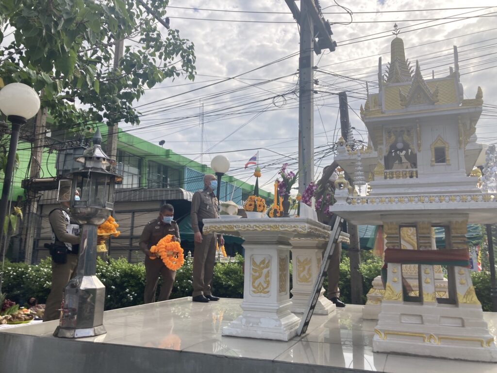 โดยมีพิธีไหว้ศาลสักการะอนุสาวรีย์รัชกาลที่ 5 จากนั้นทำบุญทางศาสนาของ 2 ศาสนา ได้แก่พิธีสงฆ์ โดยรองเจ้าอาวาสวัดเขียนเขตเป็นพระประธาน ส่วนทางด้านมุสลิมอีหม่าน มัสยิดนาย อับดุลเลาะห์ มะหะหมัด มัสยิดญาเมี๊ยอัตตักวาคูบางหลวง เป็นประธานพิธี พอเสร็จการทำบุญทั้ง 2 ศาสนาแล้ว ทางด้าน พล.ต.ต.ชุมพล ชาญชนะโยธิน ผบก.ภ.จว.ปทุมธานี พร้อมคณะแม่บ้านตำรวจภูธรจังหวัดปทุมธานี มอบถุงยังชีพและสิ่งของให้กับข้าราชการตำรวจ สภ.ธัญบุรี เพื่อเป็นขวัญและกำลังใจพร้อมดูแลความปลอดภัยต่อชีวิตและทรัพย์สินของพี่น้องประชาชน ขณะเดียวกันได้ให้ข้าราชการตำรวจทุกนาย ให้ร่วมมือร่วมใจ ตั้งใจทำงานด้วยความมุ่งมั่น มีความซื่อสัตย์ สุจริต ปฏิบัติต่อประชาชนอย่างเท่าเทียมกันและไม่สร้างเงื่อนไข เพื่อให้ประชาชนเกิดความเชื่อมั่น ศรัทธา และให้ความร่วมมือ