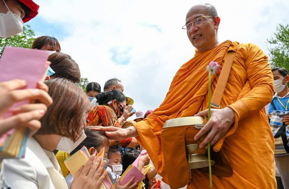 เมื่อเวลา 11.00 น. วันที่ 11 พฤษถาคม 2565 พระครูสมุห์สนิทวงศ์ วุฑฺฒิวํโส ผอ.สำนักสื่อสารองค์กร วัดพระธรรมกาย ตำบลคลองสาม อำเภอคลองหลวง จังหวัดปทุมธานี ได้เปิดเผยว่า พระสงฆ์วัดพระธรรมกายได้ร่วมพิธีถวายพระบรมสารีริกธาตุและบรรจุรัตนชาติ ที่วัดบ๋าหว่างเจดีย์ อ.อวงบี๊ จ.กว๋างนิญ ประเทศเวียดนาม ระหว่างวันที่ 7-8 พ.ค.2565 ที่ผ่านมา เพื่อประดิษฐานเจดีย์รวม 3 เจดีย์ ได้แก่ วัดบ๋าหว่างเจดีย์ เจดีย์กว๊านสือ เจดีย์เฝิดติ้ก ต่อด้วยพิธีสวดเจริญพระพุทธมนต์ นั่งสมาธิ แผ่เมตตาถวายเป็นพุทธบูชาเนื่องในเทศกาลวันวิสาขบูชา เพื่อขอรับรองว่า มีความประสงค์ต้องการจะแปลงนิกายจากมหายานเป็น “เถรวาท” เพื่อทำงานร่วมในการเผยแผ่พระพุทธศาสนาแบบเถรวาททั้งในประเทศเวียดนามและทั่วโลก