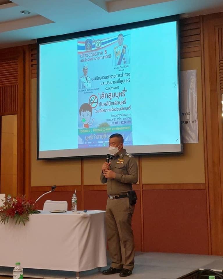 พล.ต.ท.ปิยะ ต๊ะวิชัย ผบช.ภ.5 เป็นวิทยากรพิเศษบรรยายกิจกรรมการอบรมเชิงปฏิบัติการโครงการพัฒนาสถาบันอุดมศึกษาปลอดบุหรี่ ปลอดปัจจัยเสี่ยงต่อสุขภาวะด้านการพัฒนาศักยภาพของคณาจารย์ บุคคลากร ในสถาบันอุดมศึกษาเพื่อการมีส่วนร่วมพัฒนาสถาบันอุดมศึกษาสู่การเป็นสถาบันอุดมศึกษาปลอดบุหรี่และปัจจัยเสี่ยง เครือข่ายภาคเหนือ ณ ห้องประชุมดอยสุเทพ โรงแรมแคนทารี ฮิลล์ แอนด์ เซอร์วิส อพาร์ทเม้นท์