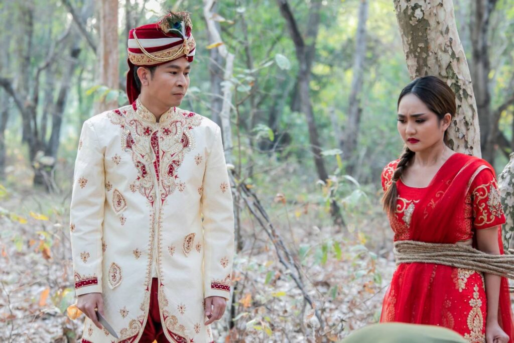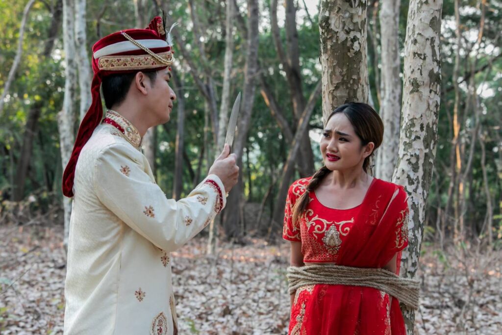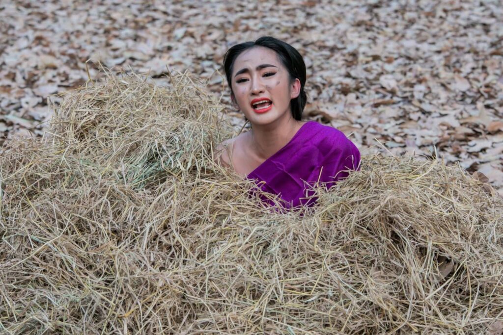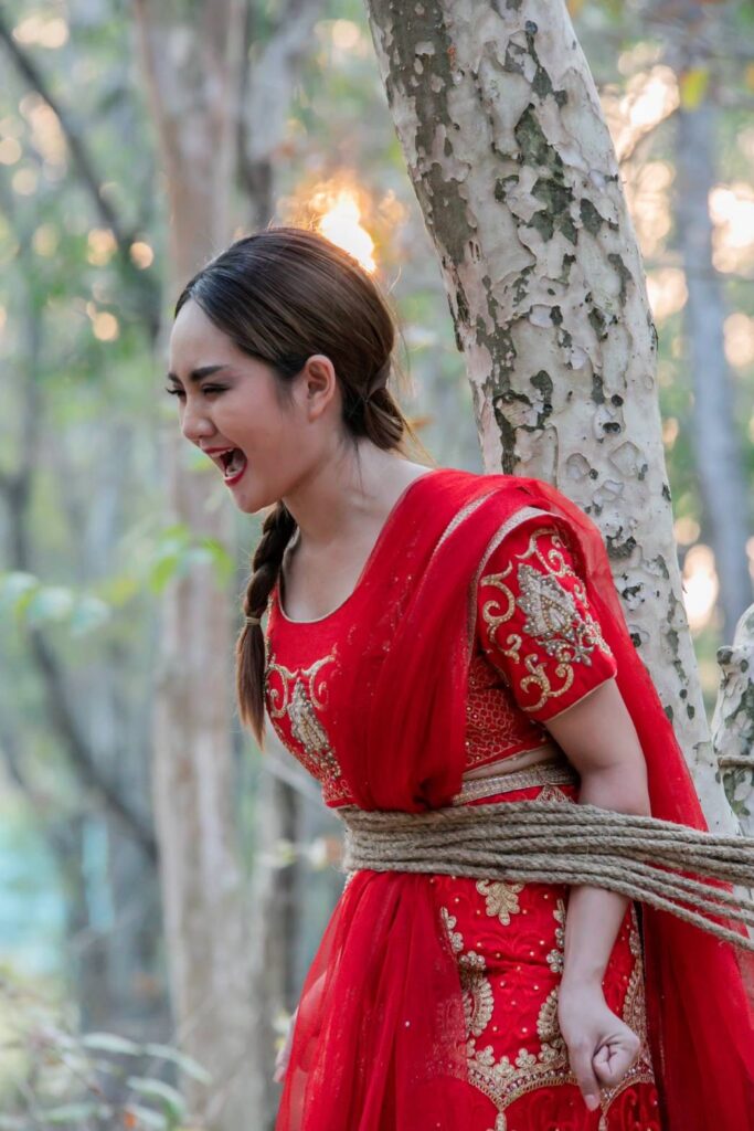 ฉากนี้ทีมงานใช้ ป่านพวงศ์ จ.ปทุมธานี เป็นสถานที่ถ่ายทำ โดยเซ็ทเป็นฉาก ลานประหาร ทีมงานจับ สาวเนเน่ สิราวรรณ ผูกไว้กับต้นไม้ แล้วขุดหลุมใส่ฟาง โดยให้ หนุ่มต้อม และ สาวเนเน่ ธันย์ชนก ลงไปนั่งข้างล่าง หลังจาก ครูมิ้งค์ซักซ้อมคิวนักแสดงเรียบร้อย ก็สั่งเคลื่อนกล้อง โดยเริ่มถ่ายทำฉาก ต้อม กับ เนเน่ ธันย์ชนก เสียก่อน โดยทั้งคู่ต้องร้องไห้โหยหวน ประหนึ่งถูกเผาทั้งเป็น เมื่อเสร็จฉากนี้ก็มาถ่ายฉาก หนุ่มจ๊อบ กำลังจะเฉือนเนื้อ สาวเนเน่ สิราวรรณ โดย สาวเนเน่ จะต้องแสดงอารมณ์แบบไม่มีสำนึก เพราะคิดว่าตนไม่ผิด และสิ่งที่ตัวเองทำลงไปก็ไม่ผิด แต่ช่วงเฉือนเนื้อ เจ้าตัวต้องร้องเสียงดังมากด้วยความเจ็บปวด จากนั้นก็แพลนกล้องมาที่ หนุ่มท๊อด (สุทธิพงษ์ นาคแดง) ผู้รับบท ราชบัณฑิต กำลังทอดเนื้อสดๆ เมื่อทอดเสร็จก็ส่งให้ หนุ่มจ๊อบ ป้อนเข้าปาก สาวเนเน่ สิราวรรณ อีกครั้ง!!!