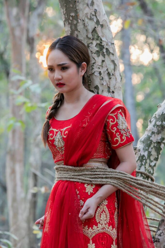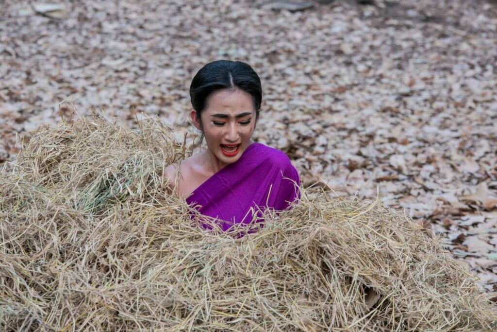 “บทพระนางมาคันทิยา เป็นบทที่ยากมากค่ะ เพราะครูมิ้งค์เล่าให้ฟังว่า หาคนมาเป็นบทนี้ยากมาก ด้วยมีพระผู้ใหญ่หลายท่านถามว่า ใครจะมารับบทนี้ แล้วหนูก็ได้มาเล่น ซึ่งเป็นความโชคดีของหนูมากๆ แล้วก็กดดันมากๆ ด้วย ก็ต้องมีไปเวิร์คช้อป ทำการบ้านเยอะมาก ครูมิ้งค์ก็อธิบายถึงตัวละครตัวนี้ว่าเขาคิดอย่างไร คือในหัวมีแต่ความเคียดแค้นพระพุทธเจ้า ซึ่งหนูก็ไม่รู้ว่าจะเล่นออกมาอย่างไรในช่วงแรก พอเล่นไปได้สักพัก ก็เริ่มอิน เริ่มเข้าใจความรู้สึกของพระนางมาคันทิยา เพราะในเรื่องพระพุทธเจ้าแย่งทุกสิ่งทุกอย่างในชีวิตของพระนางไปหมด คือแบบถ้าฆ่าให้ตายก็ฆ่าเลย หนูดูตัวเอง ยังรู้สึกเกลียดหน้าตัวเองเลยค่ะ (หัวเราะ) ซึ่งในบทจะต้องจ้างคนไปด่า พระพุทธเจ้า ด้วยถ้อยคำที่หยาบคายถึง 7 วัน 7 คืนด้วย คือแบบสุดมาก แล้วตอนที่ถูกเฉือนเนื้อกับกินเนื้อตัวเอง ก็ต้องแสดงอารมณ์ที่ว่า เจ็บปวดมากๆ จนขาดใจตาย แต่สีหน้าก็ต้องแสดงว่าสิ่งที่ตัวเองทำ ไม่ได้ผิดอะไรเลย ก็อยากจะให้ทุกคนติดตามชมในฉากนี้นะคะ หนูตั้งใจมาก หรือจะไปชมย้อนหลังใน youtube ก็ได้ค่ะ”