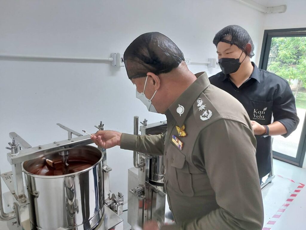 วันที่ 12 พ.ค.65 เวลาประมาณ 12.00 น. พล.ต.ท.ปิยะ ต๊ะวิชัย ผบช.ภ.5 ได้มาพบกับคุณธนา คุณารักษ์วงศ์ เจ้าของร้าน กานเวลา (Kan Vela Craft Chocolate ตั้งอยู่ที่ อ.เมือง จว.เชียงใหม่ เพื่อพูดคุยและขอคำแนะนำเกี่ยวกับการเพาะปลูกทำสวนโกโก้ วิธีการแปรรูปเมล็ดโกโก้ ซึ่งจะนำรูปแบบและคำแนะนำที่ได้รับ ไปให้กับเจ้าหน้าที่ตำรวจนำไปเป็นแนวทางในการเพาะปลูกเพื่อเสริมรายได้ สร้างสวัสดิการและลดภาระหนี้สินให้กับเจ้าหน้าที่ตำรวจต่อไป