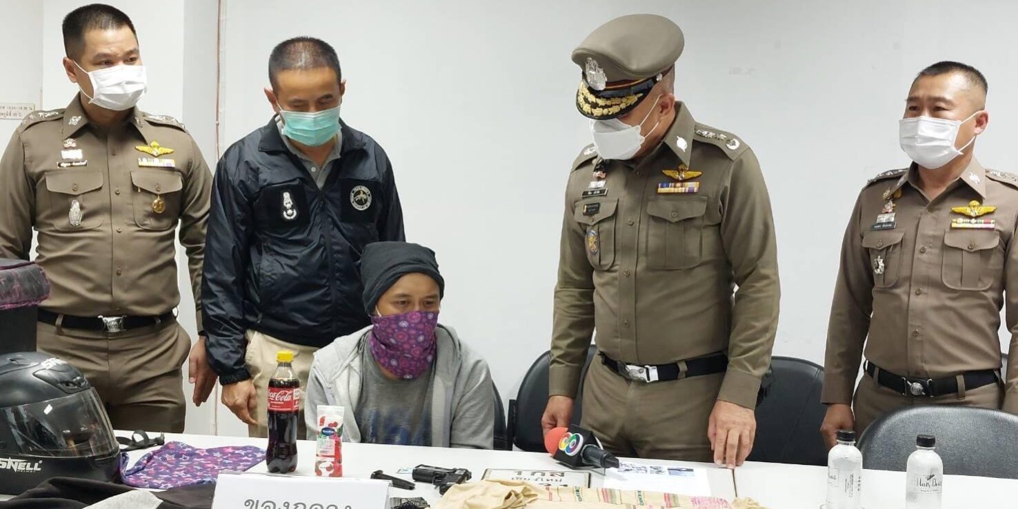 โดยเหตุเกิดเมื่อวันที่ 9 พ.ค.65 เวลาประมาณ 02.40 น. เจ้าหน้าที่ตำรวจได้รับแจ้งเหตุคนร้ายชิงทรัพย์ ร้านสะดวกซื้อตั้งอยู่ใน ปั้ม ปตท.สาขาบ้านน้อย (หน้าหมู่บ้านสมหวัง) ต.สันกำแพง อ.สันกำแพง จ.เชียงใหม่ จึงได้รายงานผู้บังคับบัญชาทราบ และรีบออกไปตรวจสถานที่เกิดเหตุ พบพนักงานขายร้านสะดวกซื้อฯ ผู้ประสบเหตุ ให้การว่า เวลาประมาณ 02.37 น. ขณะที่ พนักงานขาย ทำหน้าที่อยู่ในร้านพบเห็นคนร้าย เป็นชายวัยกลางคน รูปร่างสันทัด จำนวน 1 คน เข้ามาในร้าน แต่งกายด้วยเสื้อแขนยาวสีดำ กางเกงขายาวสีดำ สวมผ้าคลุมหัวสีดำ ใช้ผ้าสีดำปิดจมูกปาก (คงเห็นใบหน้าส่วนหน้าผากและดวงตา) สะพายถุงย่ามสีขาว เข้ามาภายในร้าน ทำทีท่าว่าจะซื้อของ โดยระหว่างที่คนร้ายกำลังนำสินค้า (ครีมจำนวน 1 อัน และน้ำอัดลมโค๊ก จำนวน 1 ขวด) วางของที่หน้าเคาน์เตอร์ช่องที่ 3 ซึ่งมี พนักงานขายทำหน้าที่เก็บเงิน ระหว่างนั้นคนร้ายได้ใช้มือขวาหยิบอาวุธปืนสีดำ (ไม่ทราบยี่ห้อ) ออกมาจากถุงย่ามและดึงลูกเลื่อนจำนวน 1 ครั้ง นำอาวุธปืนมาวางไว้บนโต๊ะแคชเชียร์ และเอาถุงพลาสติกสีดำโยนให้กับ พนักงานขายแล้วบอกให้นำเงินใส่ในถุงสีดำ พนักงานขายตกใจกลัวจึงยกมือไหว้และพยายามจะเดินหนีออกไปประตูหลัง แต่คนร้ายได้เข้ามาขวางทางเดินไว้ พนักงานขายจึงกลับไปนำเงินจากลิ้นชัก จำนวน 2,500 บาท ใส่ถุงพลาสติกสีดำที่คนร้ายนำมา จากนั้นคนร้ายได้หยิบเอาถุงพลาสติกใส่เงิน น้ำอัดลมยี่ห้อโค๊ก และครีม หนีออกจากร้านไปและขับรถจักรยานยนต์หลบหนีมุ่งหน้าเข้าตัวเมืองเชียงใหม่