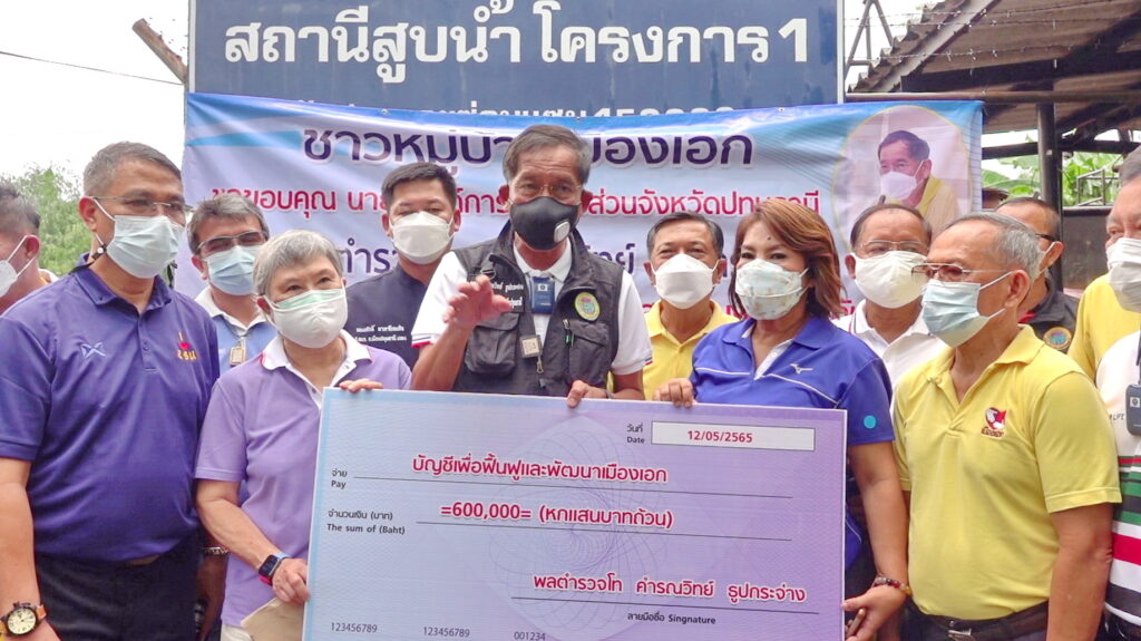 วันที่ 13 พฤษภาคม 2565 ที่สถานีสูบน้ำหมู่บ้านเมืองเอก อ.เมือง จ.ปทุมธานี พล.ต.ท.คำรณวิทย์ ธูปกระจ่าง นายกองค์การบริหารส่วนจังหวัดปทุมธานี พร้อมด้วยกัลยาณมิตร และทีมบริหารนายเสวก ประเสริฐสุข นายสิระพงษ์ สิริโพธินันท์ รองนายกองค์การบริหารส่วนจังหวัดปทุมธานี นายธนศักดิ์ แป้นมุข ที่ปรึกษานายกองค์การบริหารส่วนจังหวัดปทุมธานี และ นายทนงศักดิ์ อาภาโรจนกิจ สมาชิกสภาองค์การบริหารส่วนจังหวัดปทุมธานี ลงพื้นที่สถานีสูบน้ำ พร้อมมอบเงิน 600,000 บาท ดำเนินการซ่อมแซมเครื่องสูบน้ำเพื่อเพิ่มประสิทธิภาพในการระบายน้ำที่ท่วมขังในพื้นที่เขตชุมชนและหมู่บ้านเมืองเอก