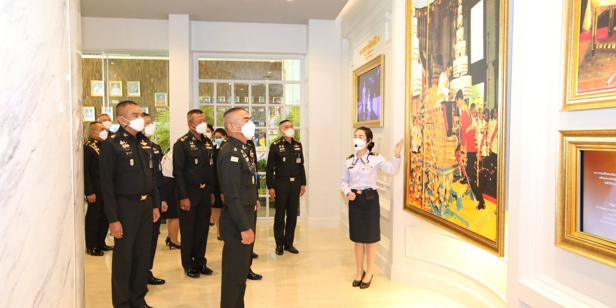 โดยพลเอกสุวิทย์ เกตุศรี ผู้อำนวยการศูนย์ประสานงานโครงการอันเนื่องมาจากพระราชดำริและความมั่นคงกองบัญชาการกองทัพไทยให้การต้อนรับและรายงานถึงความเป็นมาของการดำเนินการจัดนิทรรศการถาวรเฉลิมพระเกียรติ 70 พรรษา ห้อง 904