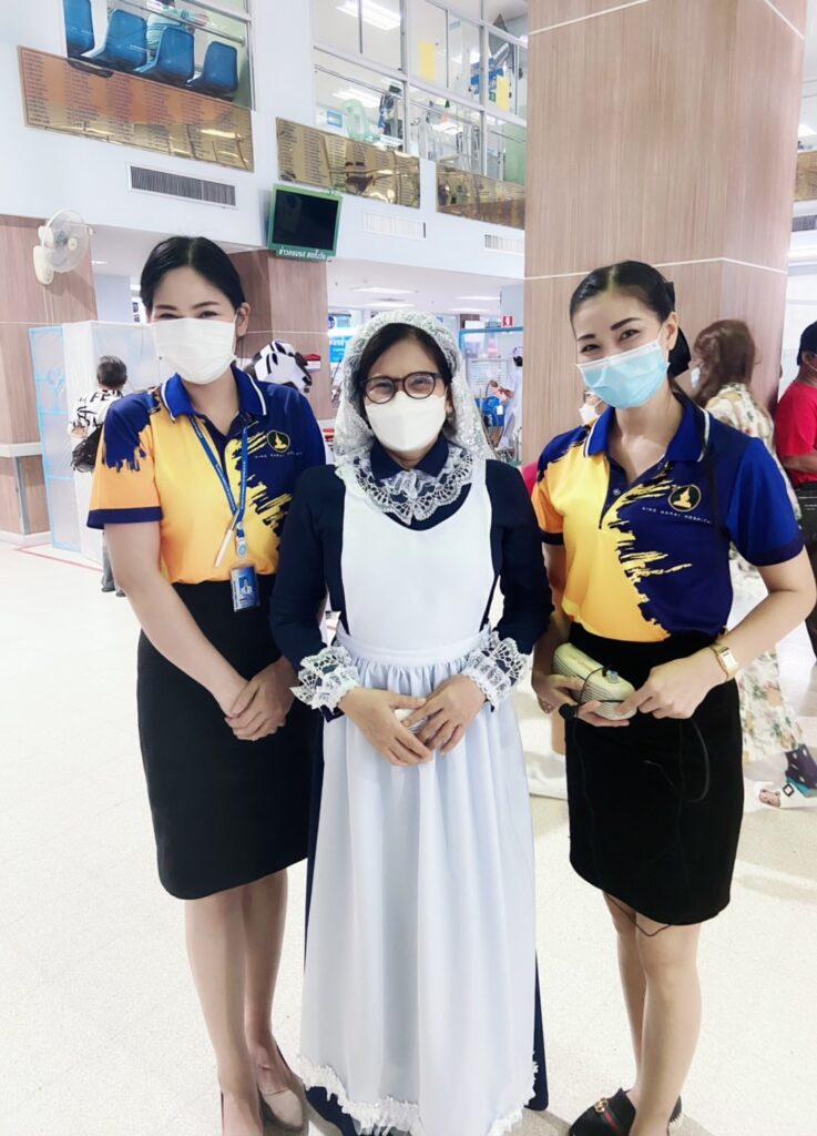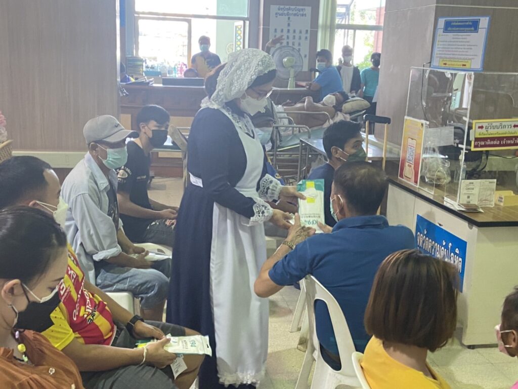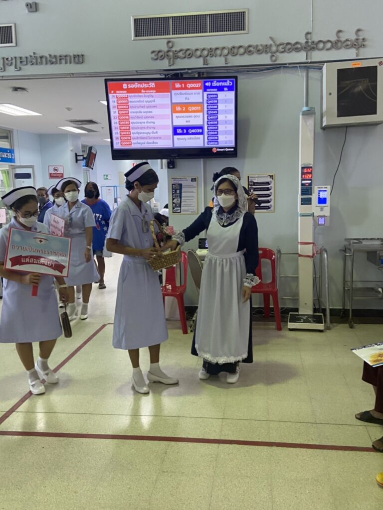 ทั้งนี้คุณรินนิภา สวนสุข หัวหน้าพยาบาลได้ร่วมแต่งกายชุดพยาบาลสากลแจกสเปรย์แอลกอฮอร์ และหน้ากากอนามัย ให้กับผู้ป่วยที่เข้ารับการรักษาในวันดังกล่าว