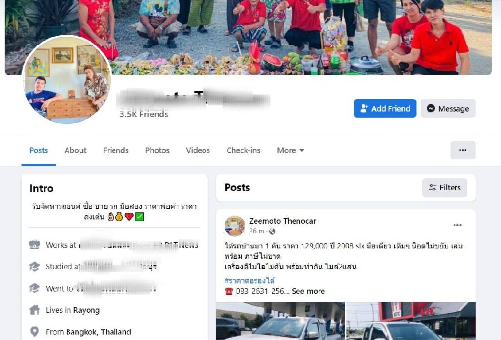 พฤติการณ์แห่งคดี เมื่อวันที่ 2 มีนาคม 2565 เวลาประมาณ 15.00 น.ขณะที่ผู้เสียหายอยู่ที่โรงเรียนอาชีวะย่านดินแดง ได้ใช้เฟซบุ๊ค ค้นหารถยนต์กระบะมือสองเพื่อนำมาใช้งานพบว่า มีผู้ใช้เฟซบุ๊กชื่อ “Zeemoto Thenocar” และไอดีไลน์ “tcar168” ได้โฆษณาผ่านทางเฟซบุ๊ก แบบสาธารณะ ว่า“รับจัดหารถยนต์,ซื้อ,ขายรถมือสอง ราคาพ่อค้า ราคาส่งเต้น” พร้อมกับมีภาพรถยนต์ประกอบให้ดู ผู้เสียหายเห็น มีรถยนต์กระบะยี่ห้ออีซูซุ ดีแม็ก สีเทา ทะเบียน มหาสารคาม ประกาศขายในราคา 140,000 บาท สนใจจึงติดต่อ ขอต่อรองราคาจนฝ่ายผู้ขายลดราคาให้คงเหลือ 110,000 บาท โดยฝ่ายผู้ขายให้จ่ายเงินค่ามัดจำก่อน 10,000 บาท ที่เหลือ 100,000 บาท ให้จ่ายที่เต้นท์ในวันรับรถ ผู้เสียหายซึ่งได้แอดไลน์เป็นเพื่อนผ่านไอดีไลน์ดังกล่าวแล้ว โดยผู้ขายให้พิกัดที่ตั้งของเต้นท์ขายรถยนต์ดังกล่าวคือ 130/100 ซอยหมู่บ้านเคหะชุมชนระยอง ต.ทับมา อ.เมือง จ.ระยอง โดยให้โอนเงินค่ามัดจำเข้าบัญชีธนาคารผู้เสียหายหลงเชื่อตามที่มีการโฆษณาขายรถยนต์คันดังกล่าว ต่อมาเวลาประมาณ 15.12 น.ของวันเดียวกัน จึงโอนเงินจำนวน 10,000 บาท จากบัญชีเงินฝาก ของผู้เสียหายผ่านแอพพลิเคชั่นของธนาคารจากโทรศัพท์มือถือของผู้เสียหายเข้าบัญชีดังกล่าว เมื่อโอนเงินเสร็จแล้วก็ส่งสลิปการโอนเงินให้กับฝ่ายผู้ขายทางไลน์ โดยผู้เสียหายได้แจ้งกับฝ่ายผู้ขายว่า จะไปรับรถยนต์คันดังกล่าวในวันอาทิตย์ที่ 6 มีนาคม 2565 ฝ่ายผู้ขายรับทราบ โดยให้ผู้เสียหายไปตามสถานที่ที่แชร์ที่ตั้งให้กับผู้เสียหายไว้ดังกล่าว