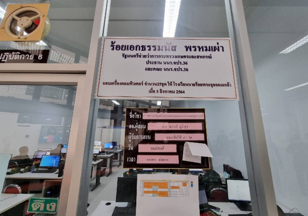 สำหรับคอมพิวเตอร์ในห้องเรียน ซึ่งได้รับการสนับสนุนจาก ร.อ.ธรรมนัส พรหมเผ่า ประธาน นนร.จปร. 36 และคณะ นนร.จปร. 36 ได้นำมามอบให้กับโรงเรียนนายร้อยพระจุลจอมเกล้า (รร.จปร.) เป็นจำนวน 25 ชุด เมื่อวันที่ 5 สิงหาคม 2564 ผ่านมา โดยมีวัตถุประสงค์ เพื่อเพิ่มประสิทธิภาพการเรียนการสอนและพัฒนาศักยภาพ ให้นักเรียนนายร้อย จปร.ด้านความมั่นคงทางไซเบอร์ ซึ่งในปัจจุบันภัยคุกคามทางไซเบอร์นับเป็นปัญหาที่สำคัญอย่างมาก โดยเฉพาะในด้านความมั่นคงและการทหาร
