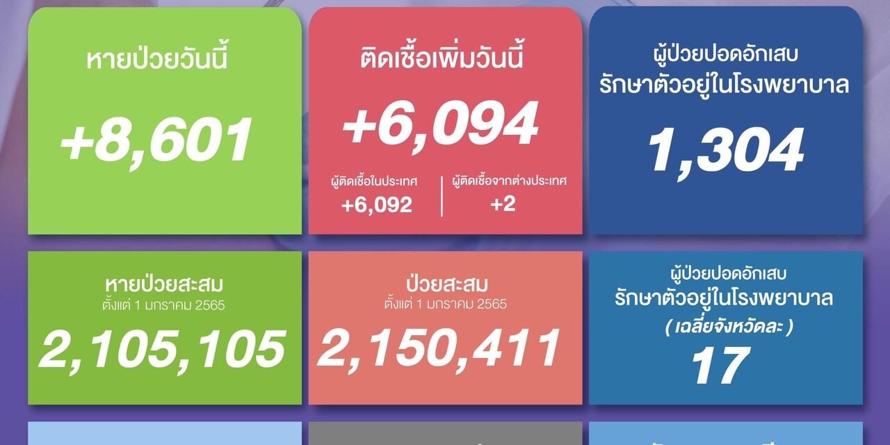ผู้ป่วยสะสม 2,150,411 ราย (ตั้งแต่ 1 มกราคม 2565)