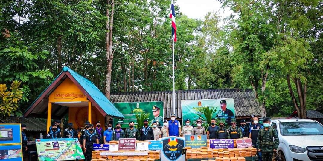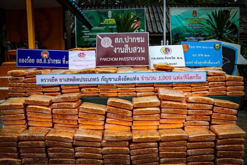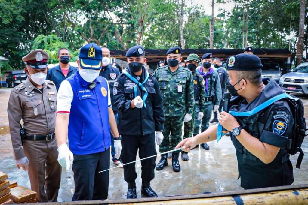 กองกำลังสุรศักดิ์มนตรี โดย หน่วยเฉพาะกิจกรมทหารพรานที่ 21 ภายใต้การอำนวยการของ พล.ต.ณรงค์ สวนแก้ว ผบ.พล.ร.3/ผบ.กกล.สุรศักดิ์มนตรี พ.อ.ณรงค์ วิชญาณวรวุฒิ ผบ.บก.ควบคุมที่ 3/ผบ.ร.8 และ พ.อ.อุทัย นิลเนตร ผบ.กรม ทพ.21/ผบ.ฉก.ทพ.21 จากการบูรณาการด้านการข่าวในพื้นที่ อ.ปากชม จ.เลย ได้รับแจ้งจากแหล่งข่าวในพื้นที่ว่าจะมีการลักลอบขนยาเสพติดจากประเทศเพื่อนบ้าน เข้ามายังประเทศไทยตามแนวชายแดนแม่น้ำโขง จึงได้สั่งการให้กองร้อยทหารพรานที่ 2103 หน่วยเฉพาะกิจกรมทหารพรานที่ 21 นำทีมโดย พ.ท.อัครเดช อัครสาร ผบ.ร้อย.ทพ.2103 จัดชุดปฏิบัติการบูรณาการกำลังในพื้นที่ลาดตระเวนในเวลากลางคืนเข้าซุ่มเฝ้าพื้นที่เพื่อตรวจสอบความเคลื่อนไหวบริเวณพื้นที่เป้าหมาย บริเวณท่าแก่งจันทร์ บ้านหาดคัมภีร์ ต.หาดคัมภีร์ อ.ปากชม จ.เลย พบรถกระบะ อีซูซุ สีขาว ทะเบียน ยง-5670 ชลบุรี จอดอยู่ข้างถนน มีกลุ่มชายฉกรรจ์ประมาณ จำนวน 6 คน กำลังขนสิ่งของถุงสีดำขึ้นรถ จึงได้แสดงตัวเข้าตรวจค้น แต่กลุ่มชายดังกล่าวตกใจทิ้งกระสอบและรถกระบะอาศัยความมืดวิ่งหลบหนีไปได้ ตรวจค้นพบกัญชาอัดแท่ง จำนวน 24 กระสอบ รวม 1,000 แท่ง/กก. อยู่ท้ายกระบะรถยนต์ จึงได้ทำการตรวจยึดของกลางทั้งหมดมาไว้ที่ บก.ร้อย.ทพ.2103 โดย เมื่อวันที่ 14 พ.ค.65 เวลา 15.00 น. นายกฤษฏา โพธิ์ชัย นายอำเภอปากชม และพ.อ.อุทัย นิลเนตร ผบ.กรม ทพ.21/ผบ.ฉก.ทพ.21 ร่วมกับฝ่ายความมั่นคงในพื้นที่ร่วมกันแถลงข่าวการตรวจยึด กัญชา จำนวน 1 ตัน พร้อมรถยนต์ จำนวน 1 คัน ในส่วนของกลางทั้งหมดหน่วยได้นำส่งให้ สภ.ปากชม จ.เลย เพื่อดำเนินการตามกฏหมายต่อไป